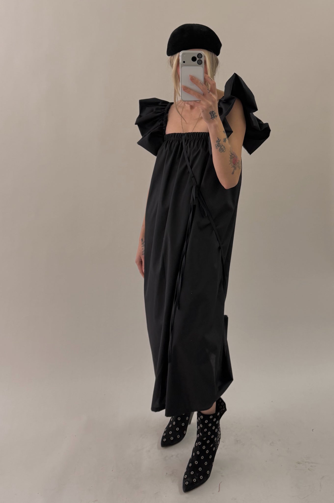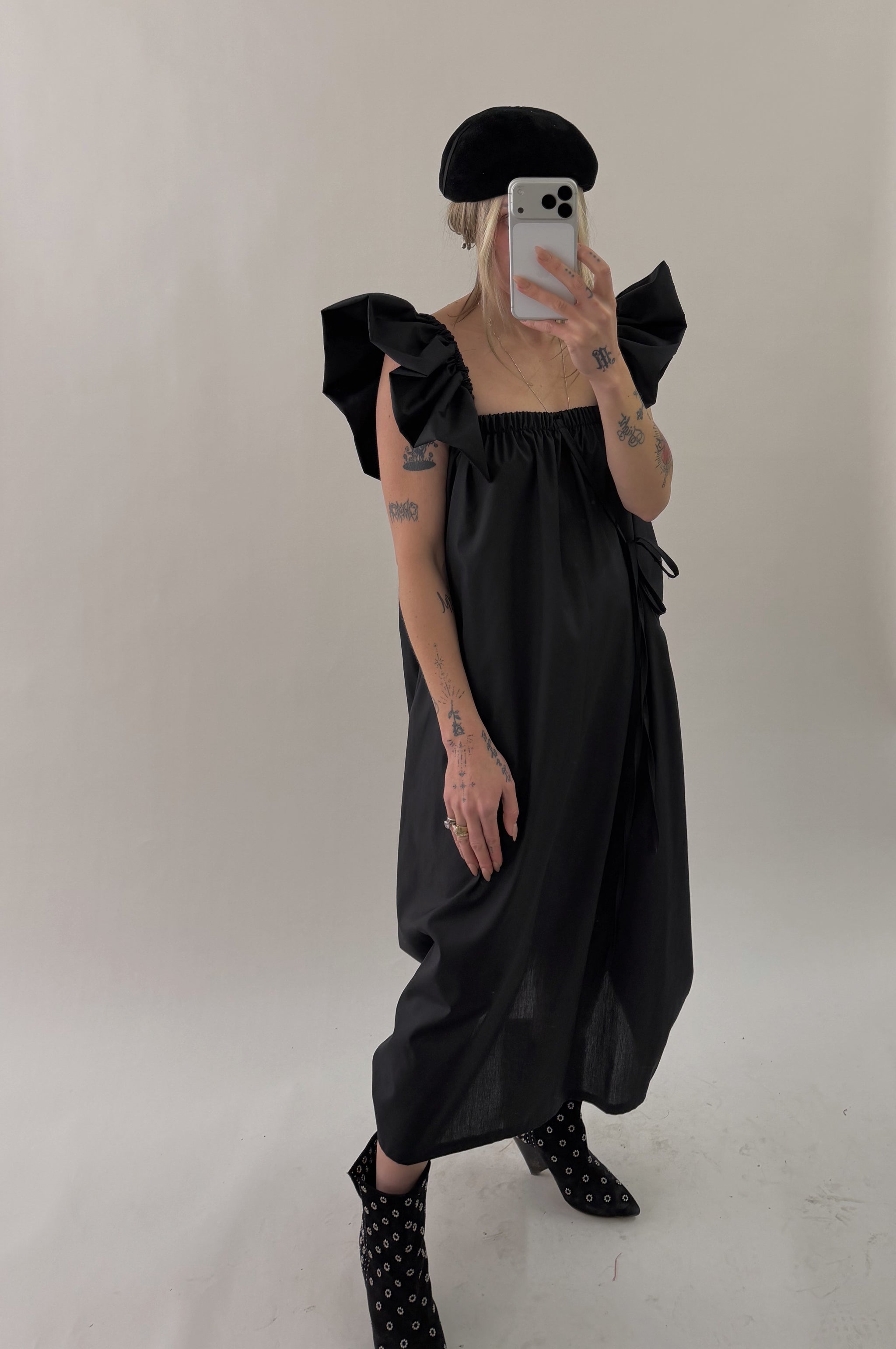 Styles are not pinned, pulled or tucked, they are worn and photographed as-is so that fit is accurately portrayed. Everything is made from vintage, deadstock, or antique materials. Your item may vary slightly from the fabric pictured here or have small flaws. Reducing waste is a top priority, so your item may be patched together slightly, in a non-noticeable way. In another effort to reduce waste, if edges are self finished or will not fray and show, they will be left as-is. The fabric is very delicate, please wear carefully.