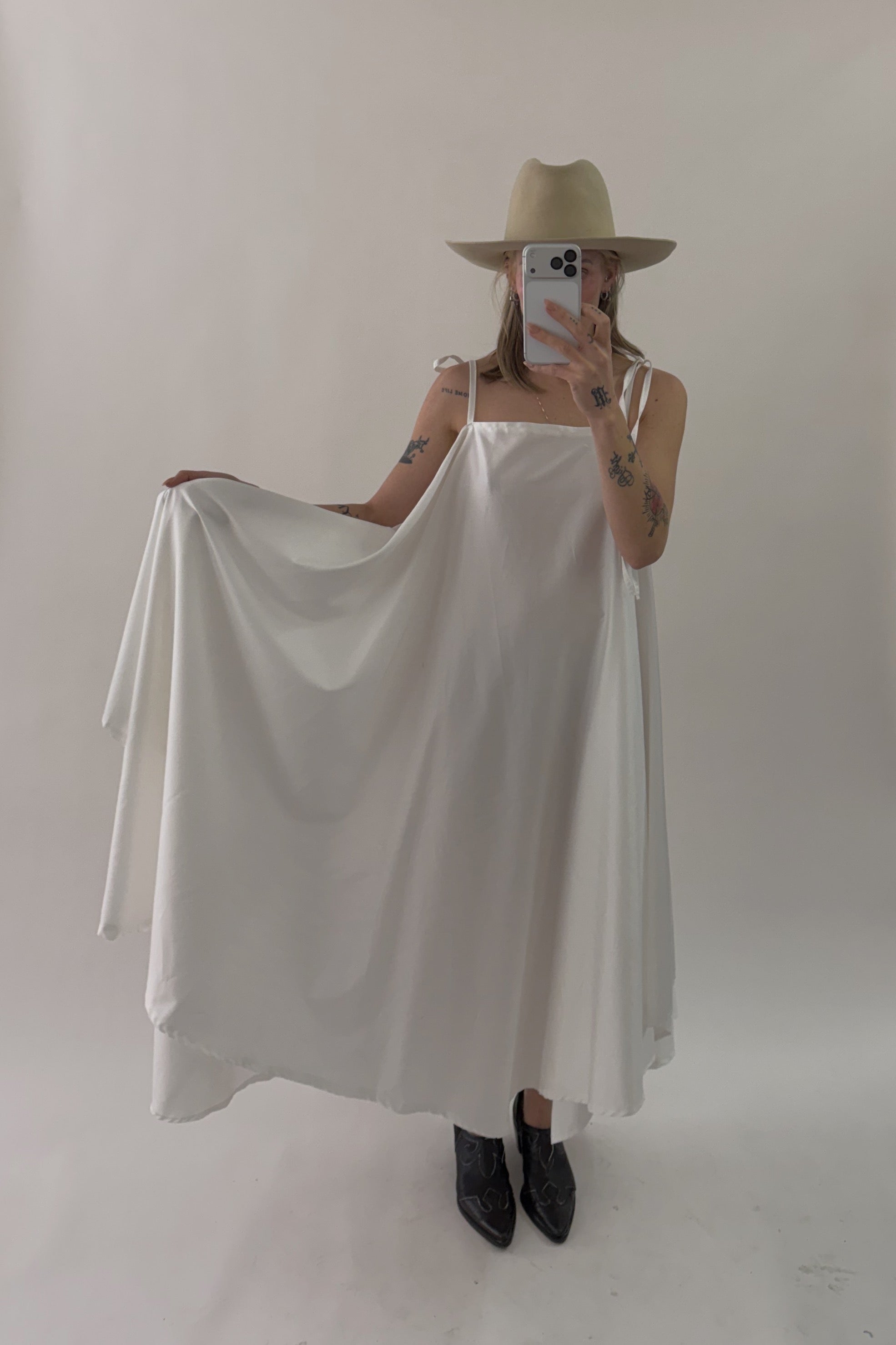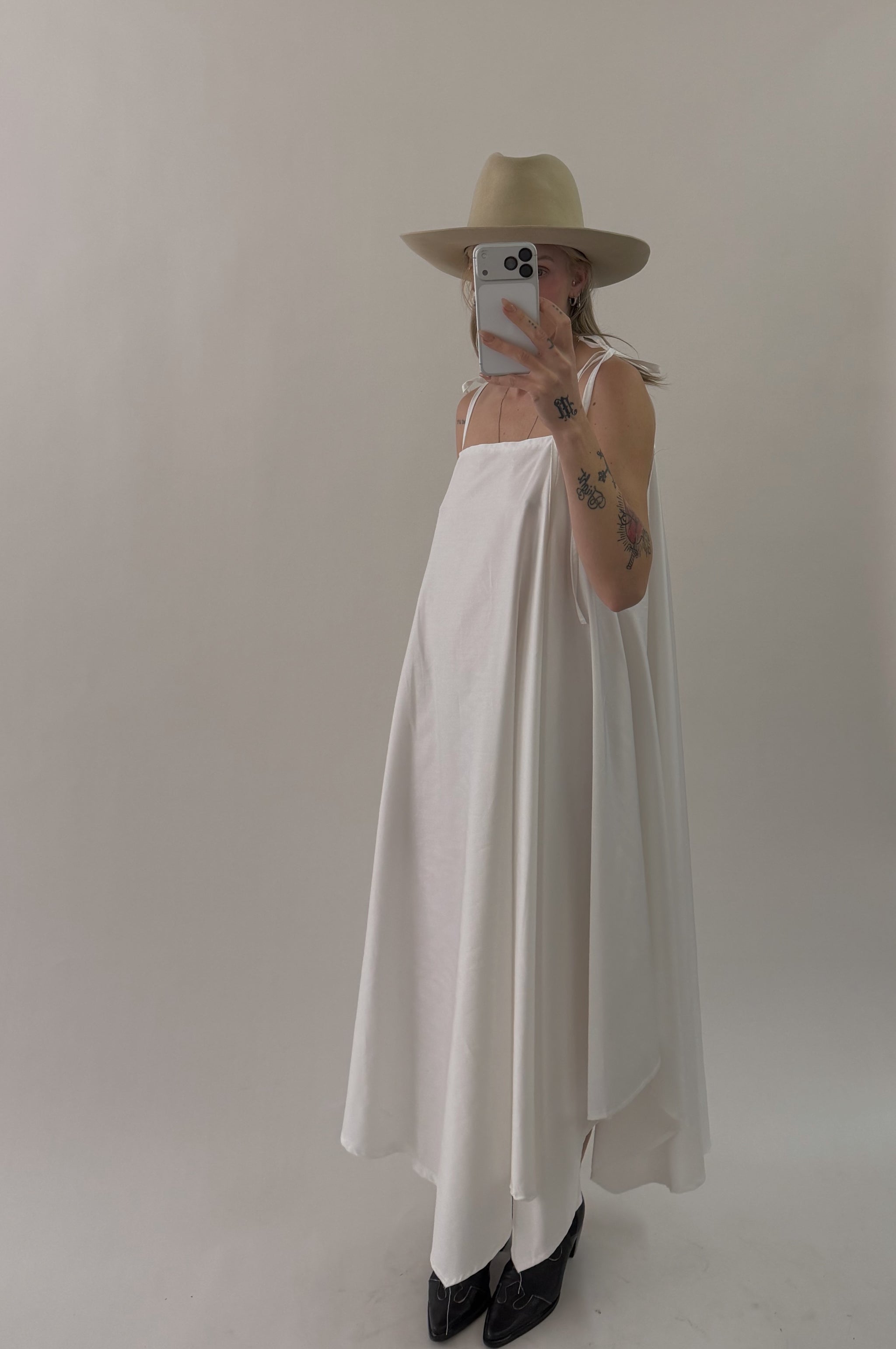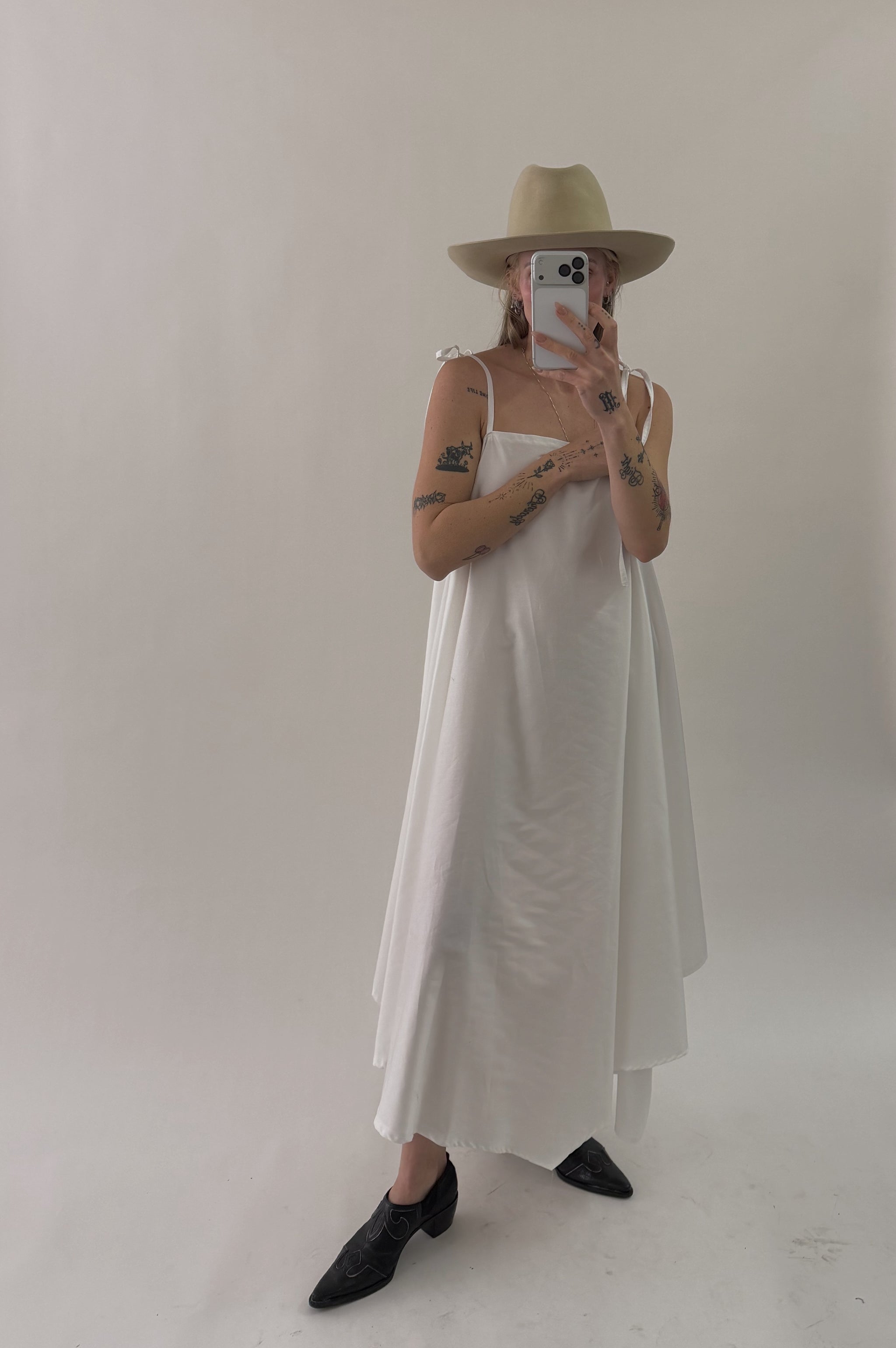 Styles are not pinned, pulled or tucked, they are worn and photographed as-is so that fit is accurately portrayed. Everything is made from vintage, deadstock, or antique materials. Your item may vary slightly from the fabric pictured here or have small flaws. Reducing waste is a top priority, so your item may be patched together slightly, in a non-noticeable way. In another effort to reduce waste, if edges are self finished or will not fray and show, they will be left as-is. The fabric is very delicate, please wear carefully.