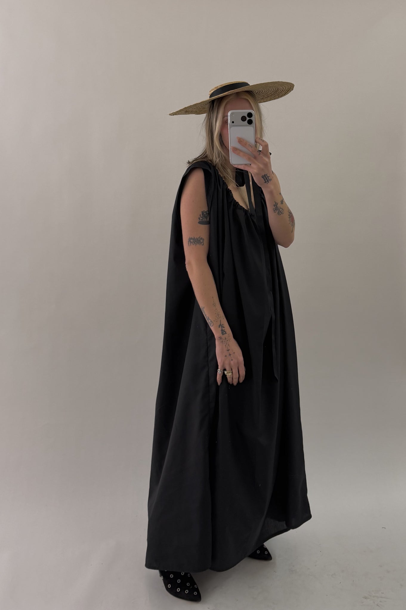Styles are not pinned, pulled or tucked, they are worn and photographed as-is so that fit is accurately portrayed. Everything is made from vintage, deadstock, or antique materials. Your item may vary slightly from the fabric pictured here or have small flaws. Reducing waste is a top priority, so your item may be patched together slightly, in a non-noticeable way. In another effort to reduce waste, if edges are self finished or will not fray and show, they will be left as-is. The fabric is very delicate, please wear carefully.