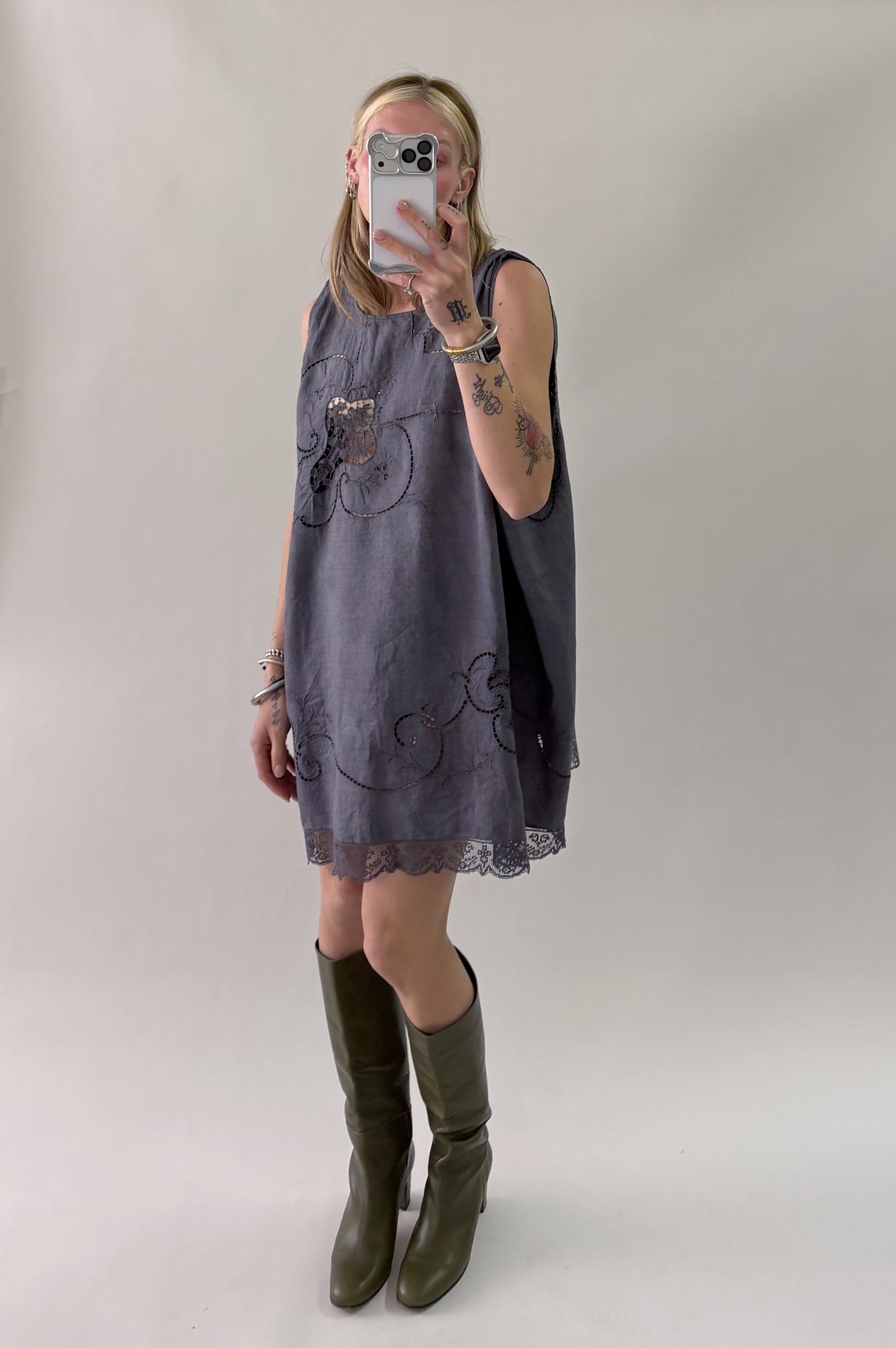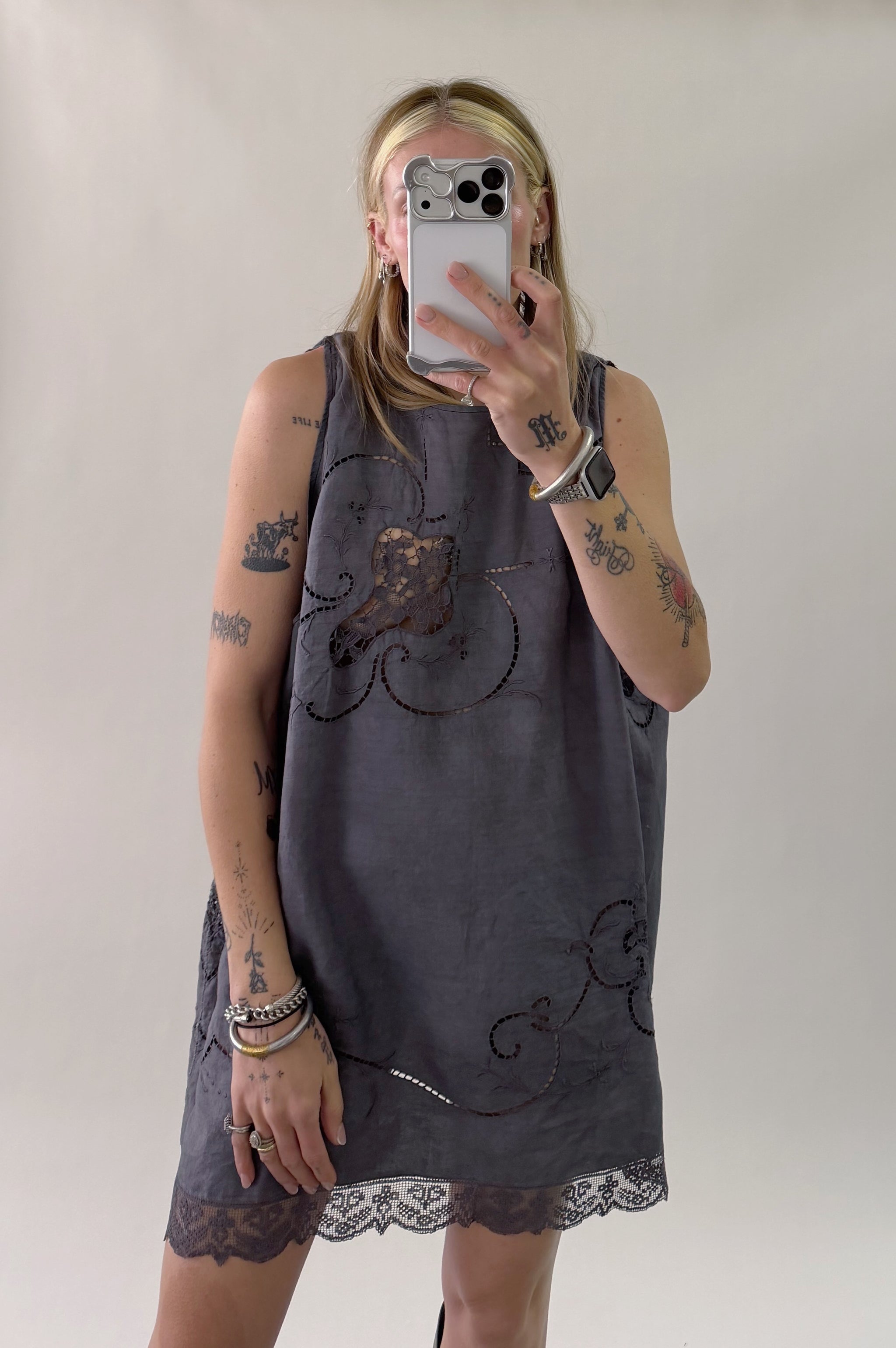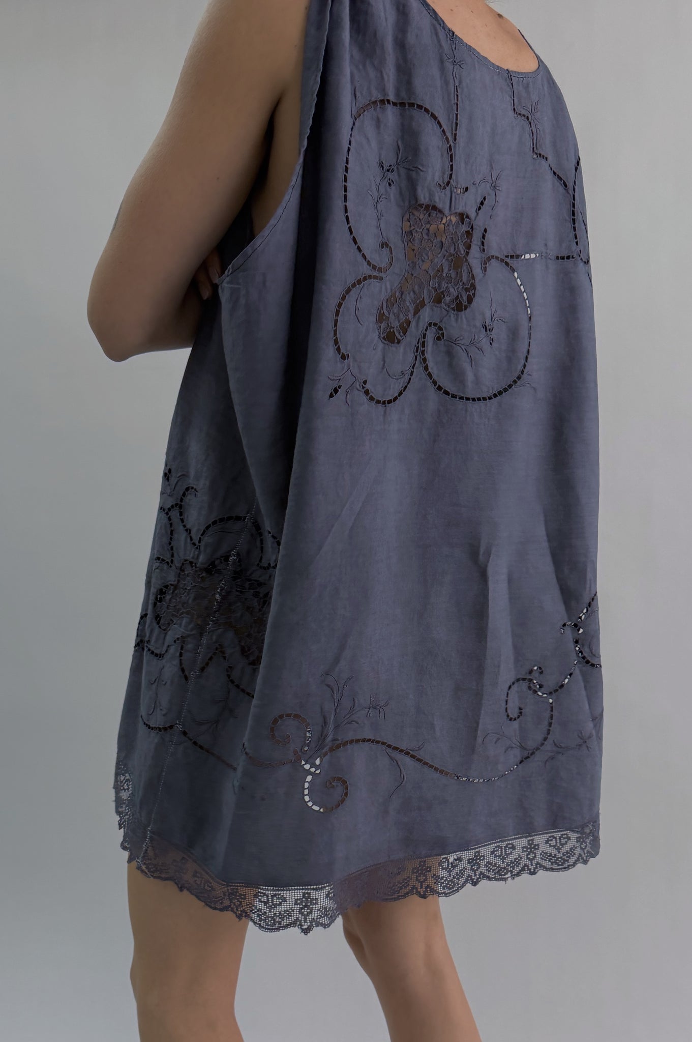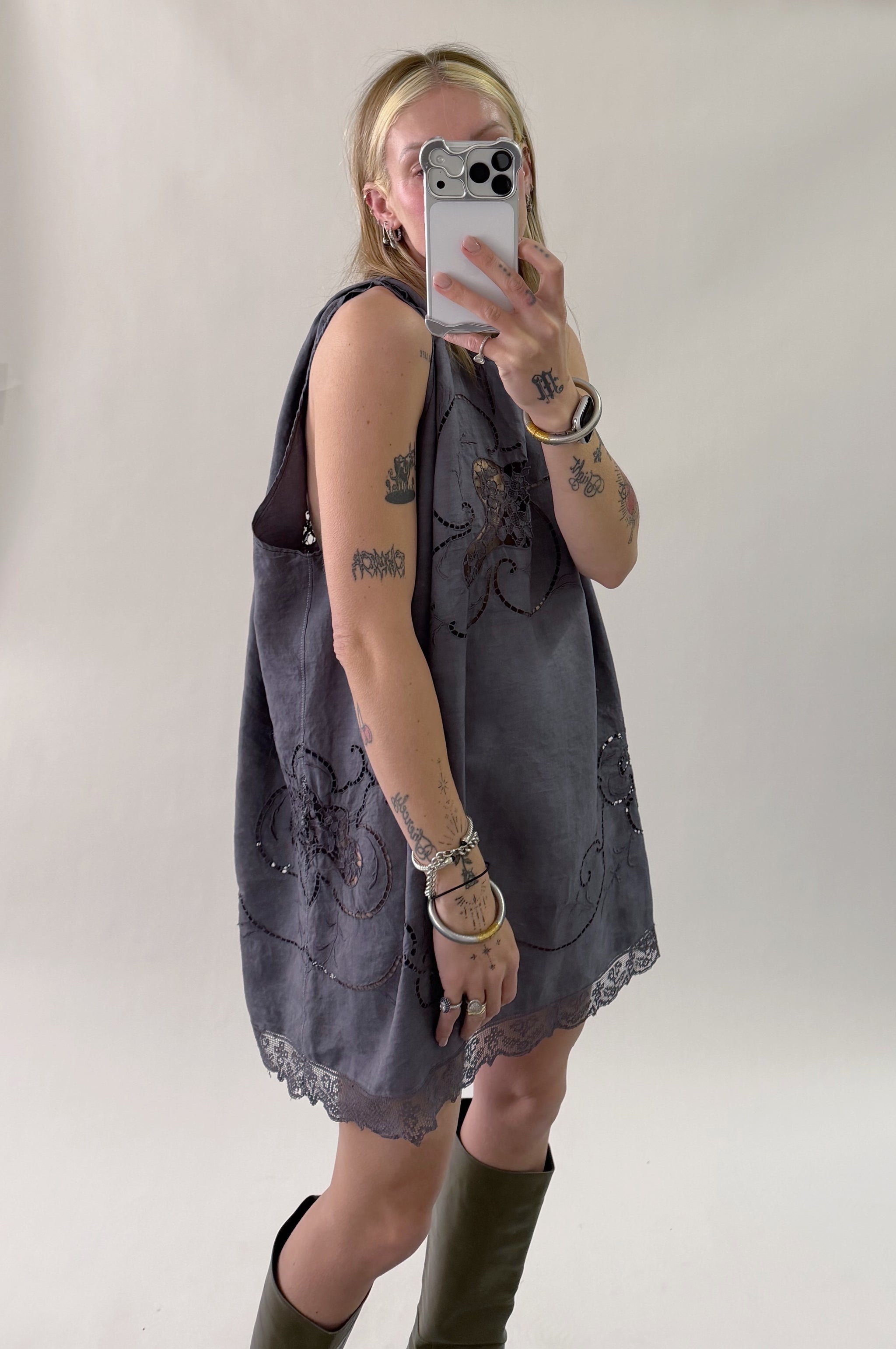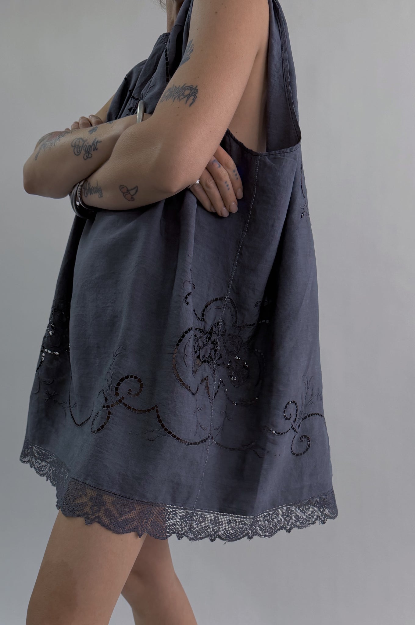 Styles are not pinned, pulled or tucked, they are worn and photographed as-is so that fit is accurately portrayed. Everything is made from vintage, deadstock, or antique materials. Your item may vary slightly from the fabric pictured here or have small flaws. Reducing waste is a top priority, so your item may be patched together slightly, in a non-noticeable way. In another effort to reduce waste, if edges are self finished or will not fray and show, they will be left as-is. The fabric is very delicate, please wear carefully.