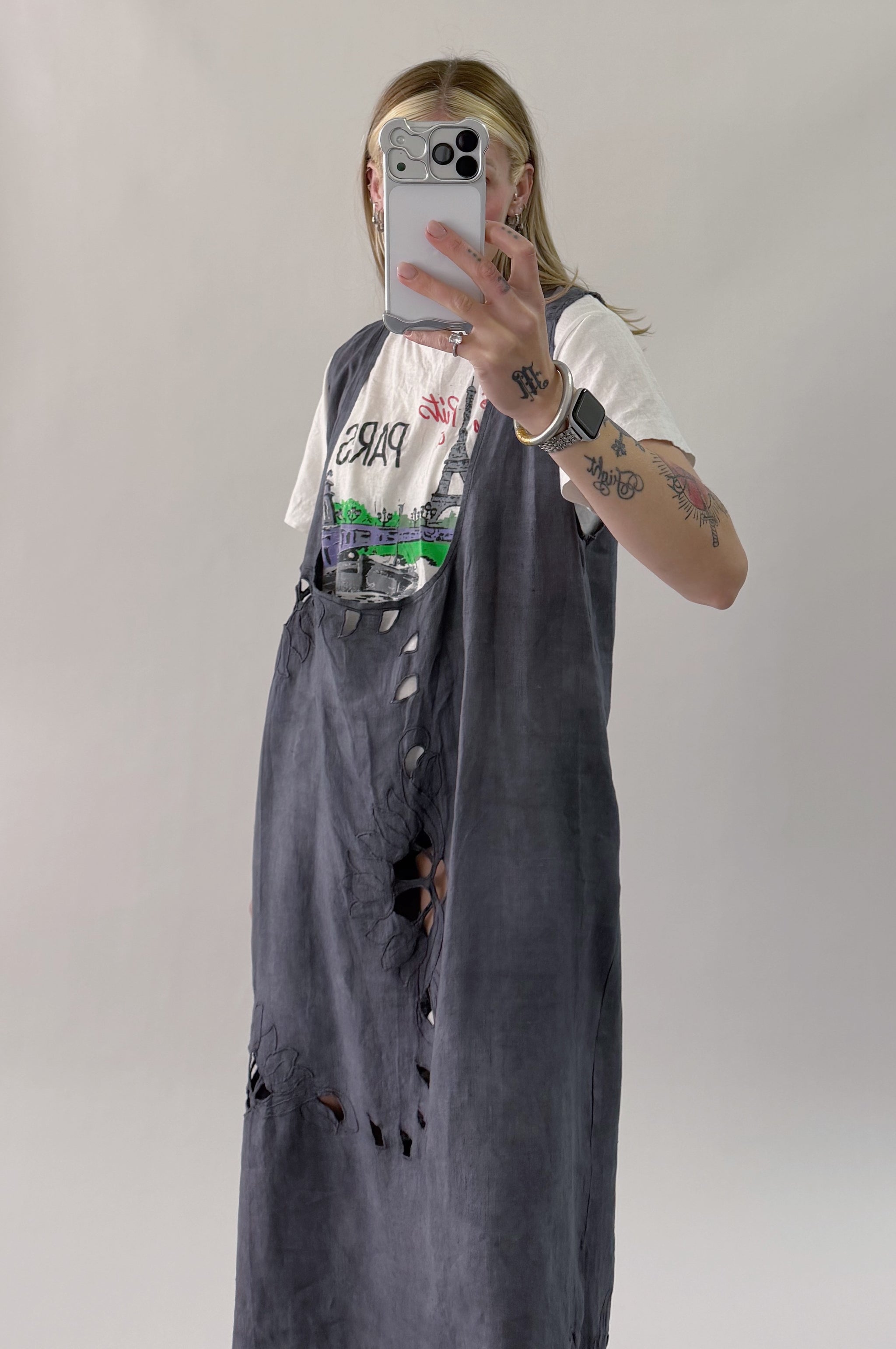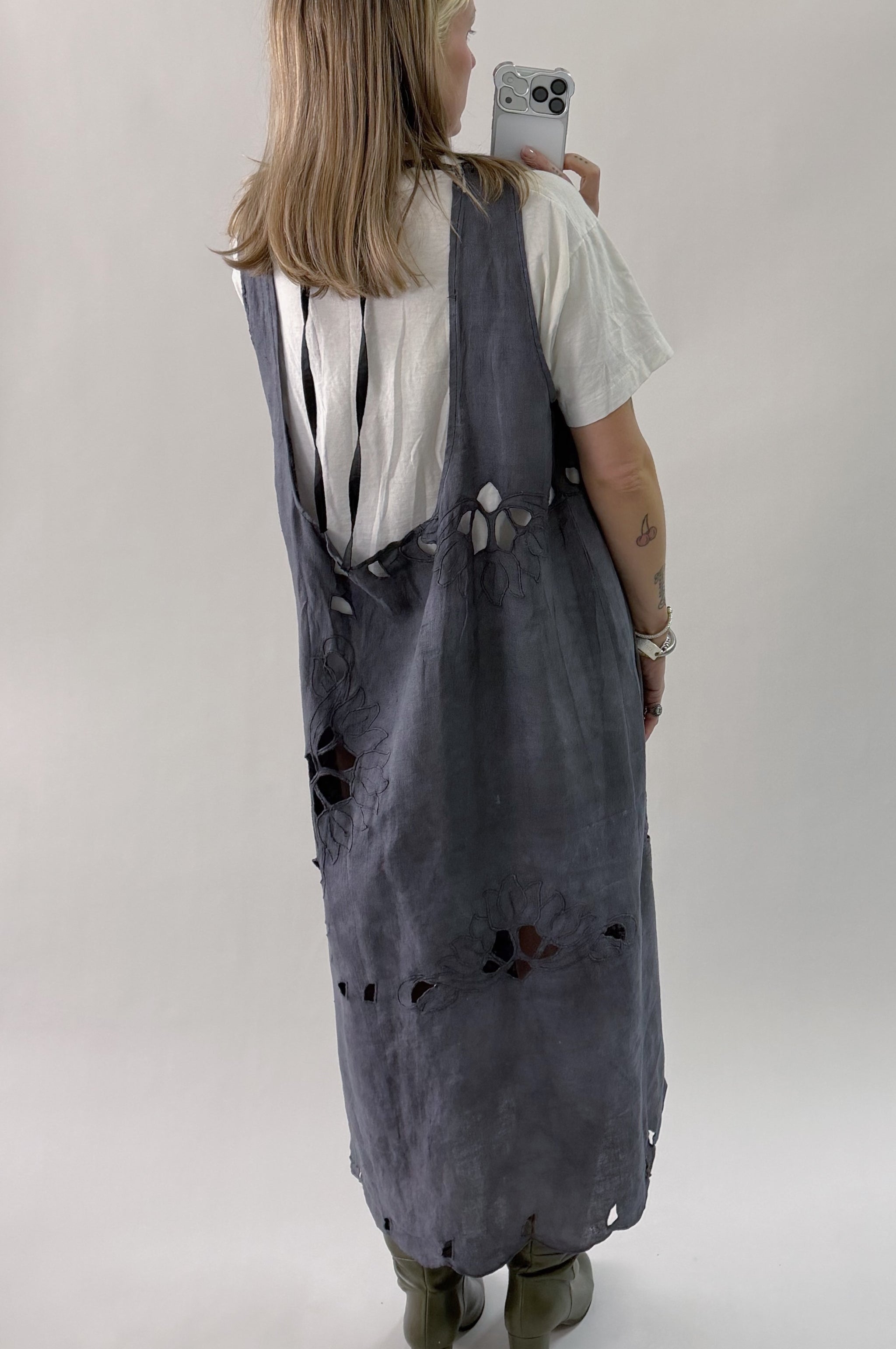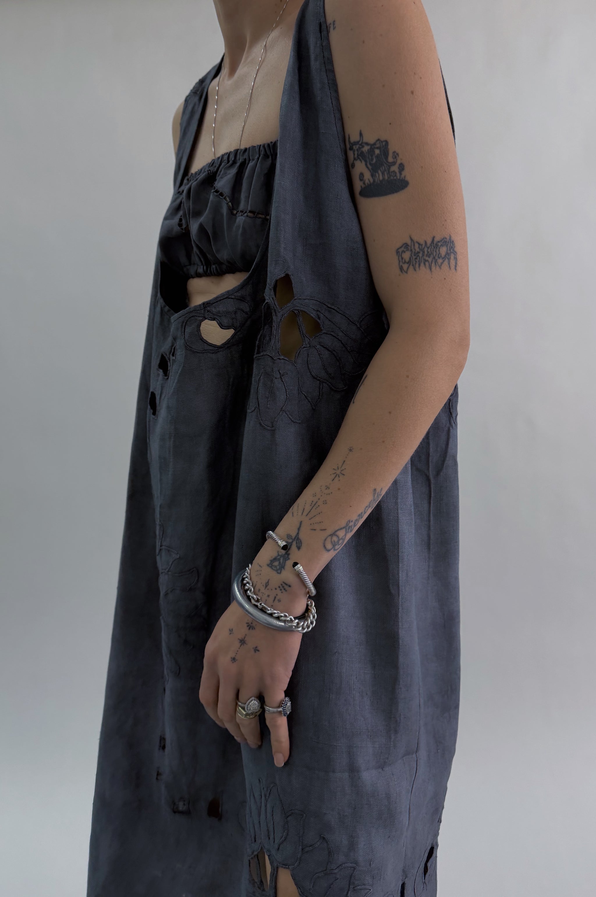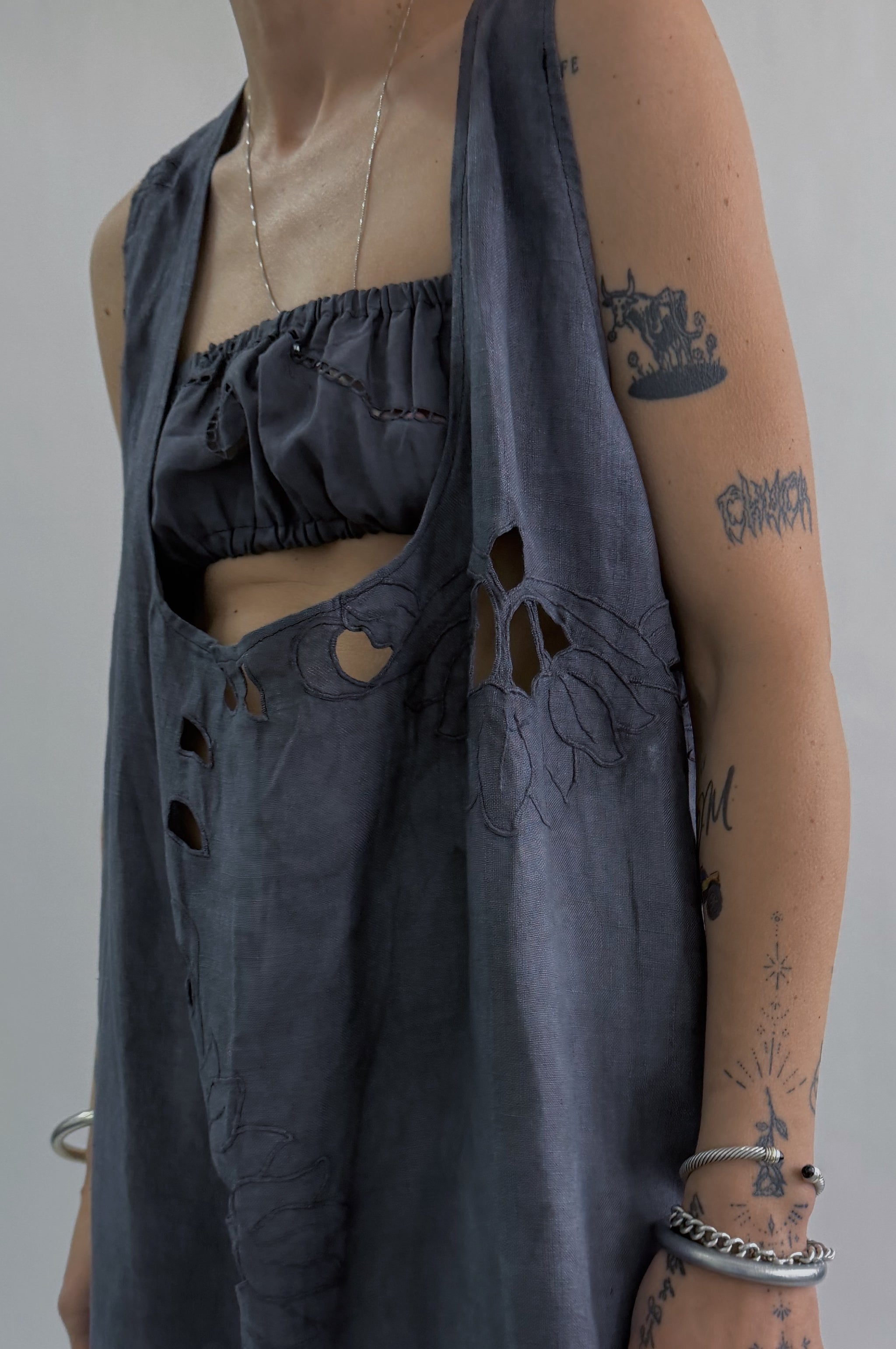 Styles are not pinned, pulled or tucked, they are worn and photographed as-is so that fit is accurately portrayed. Everything is made from vintage, deadstock, or antique materials. Your item may vary slightly from the fabric pictured here or have small flaws. Reducing waste is a top priority, so your item may be patched together slightly, in a non-noticeable way. In another effort to reduce waste, if edges are self finished or will not fray and show, they will be left as-is. The fabric is very delicate, please wear carefully.