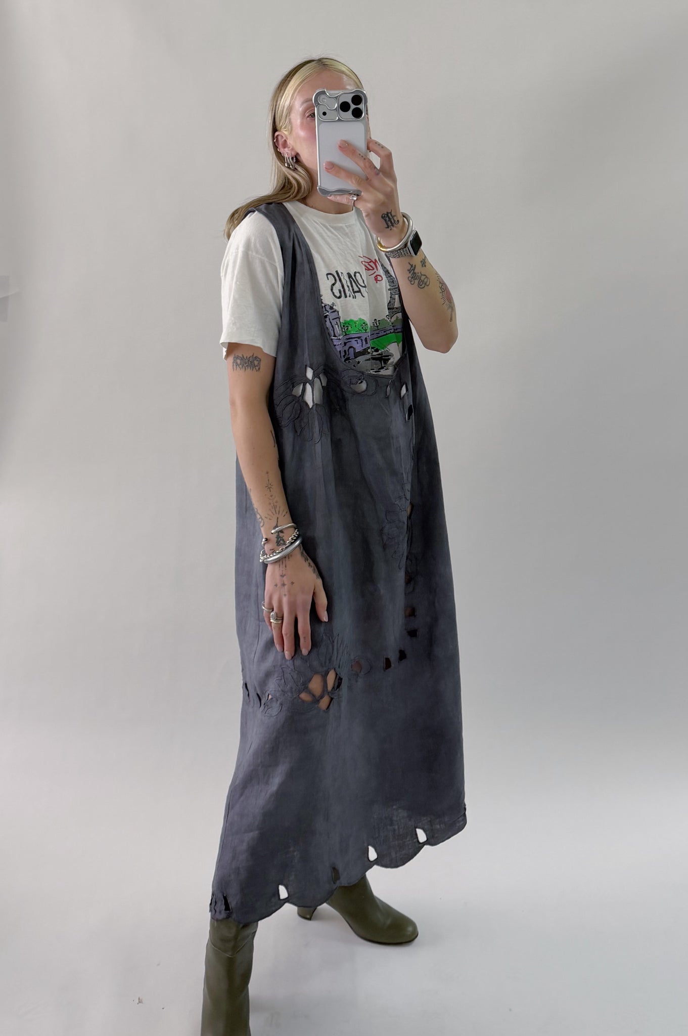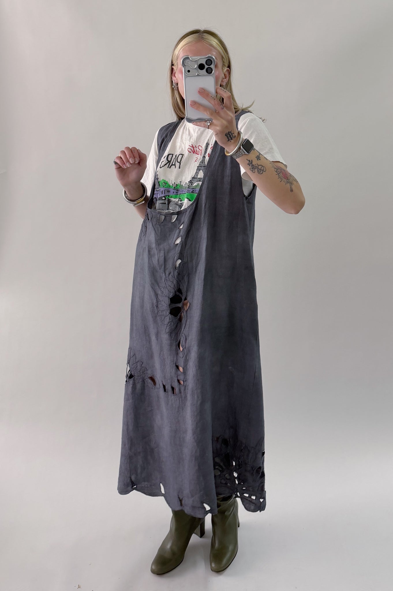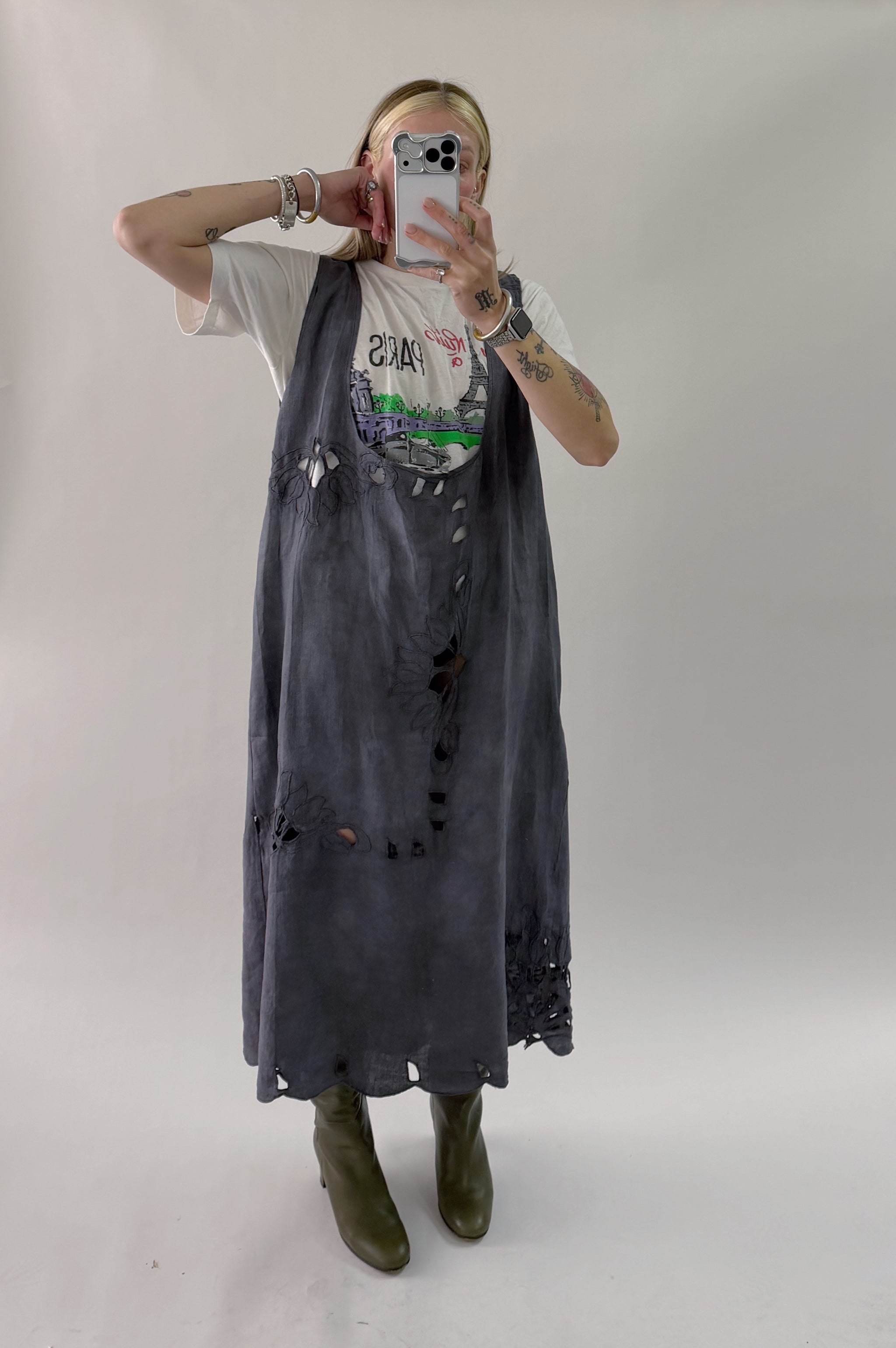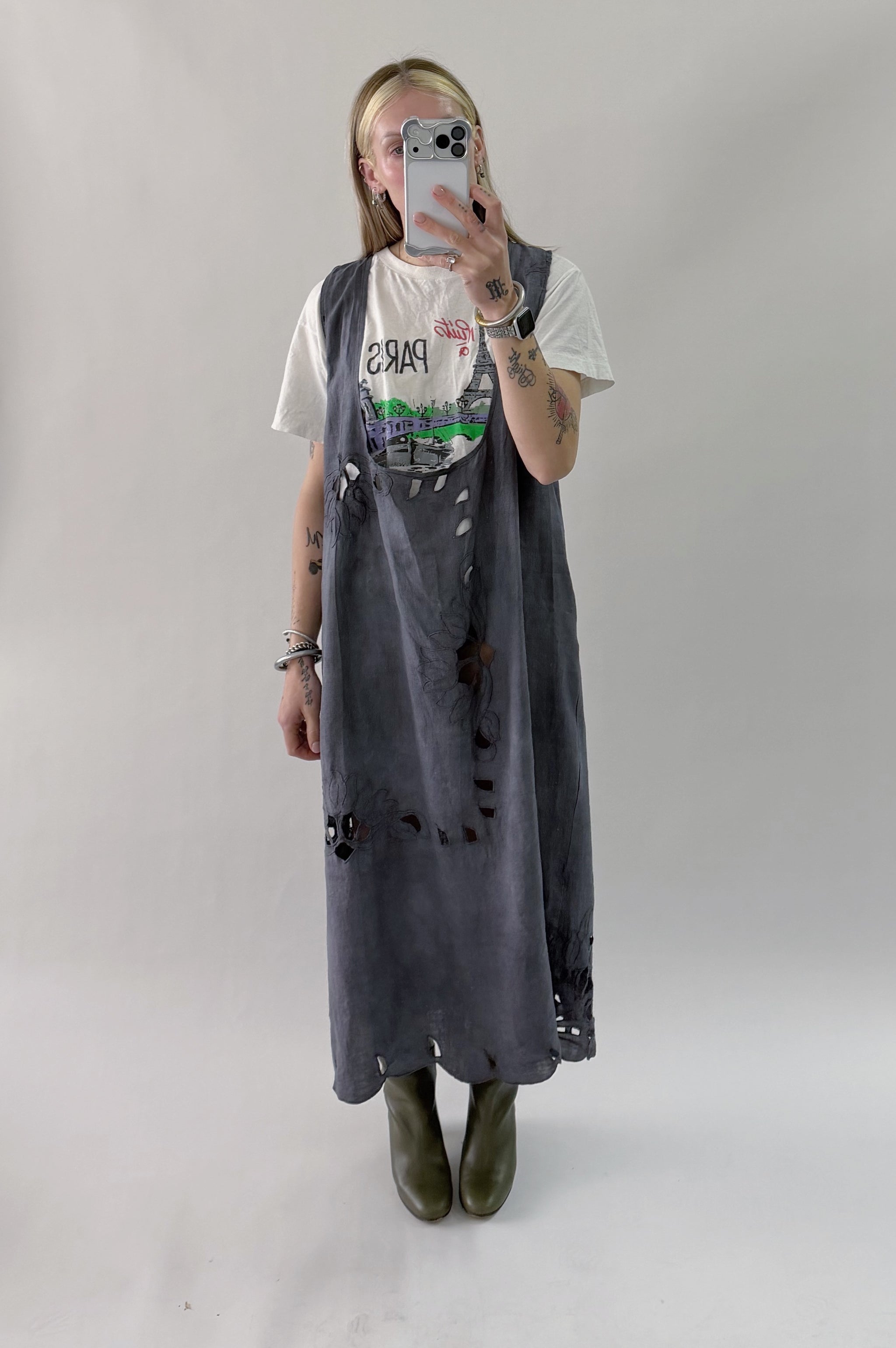 Styles are not pinned, pulled or tucked, they are worn and photographed as-is so that fit is accurately portrayed. Everything is made from vintage, deadstock, or antique materials. Your item may vary slightly from the fabric pictured here or have small flaws. Reducing waste is a top priority, so your item may be patched together slightly, in a non-noticeable way. In another effort to reduce waste, if edges are self finished or will not fray and show, they will be left as-is. The fabric is very delicate, please wear carefully.