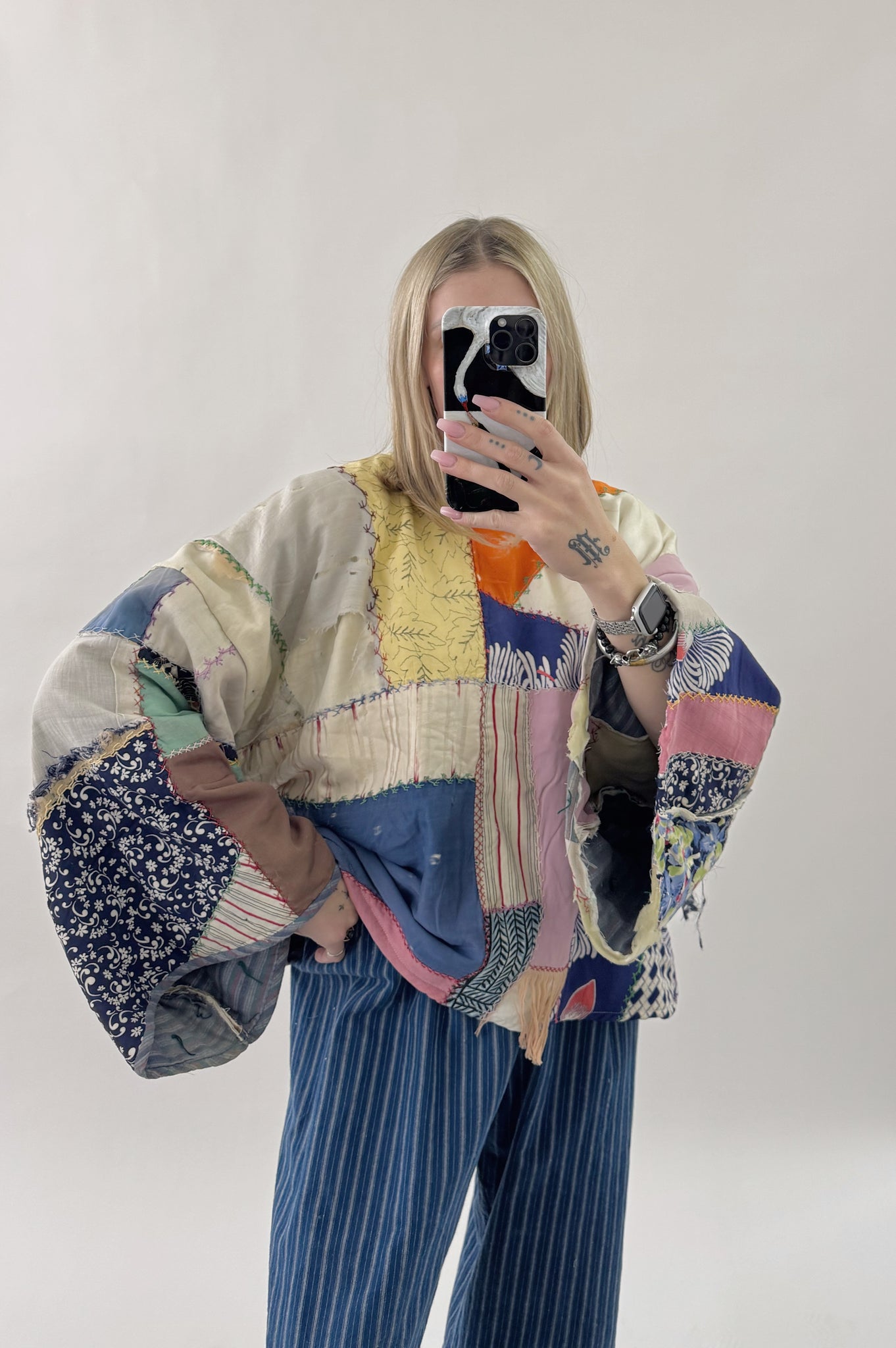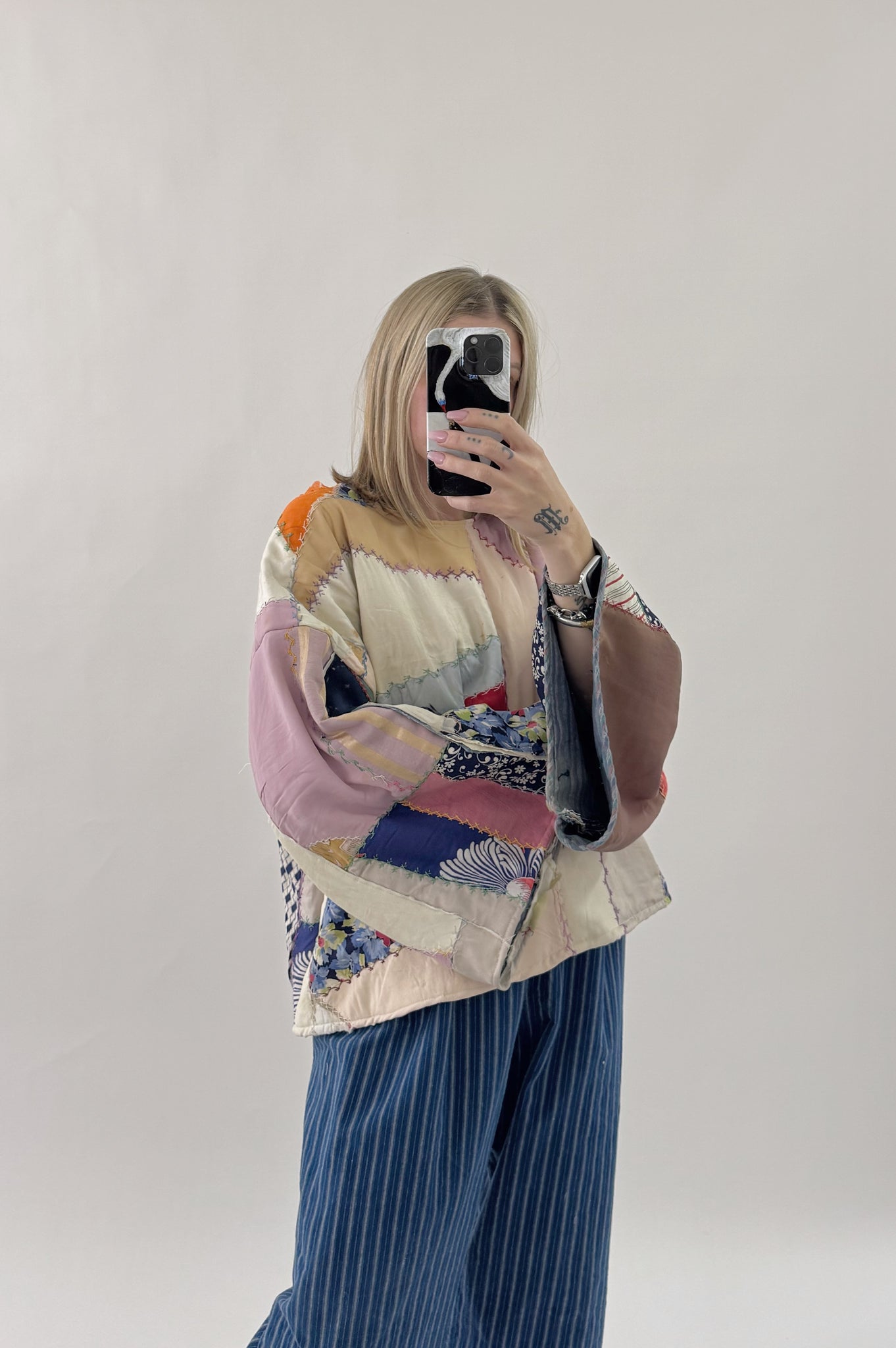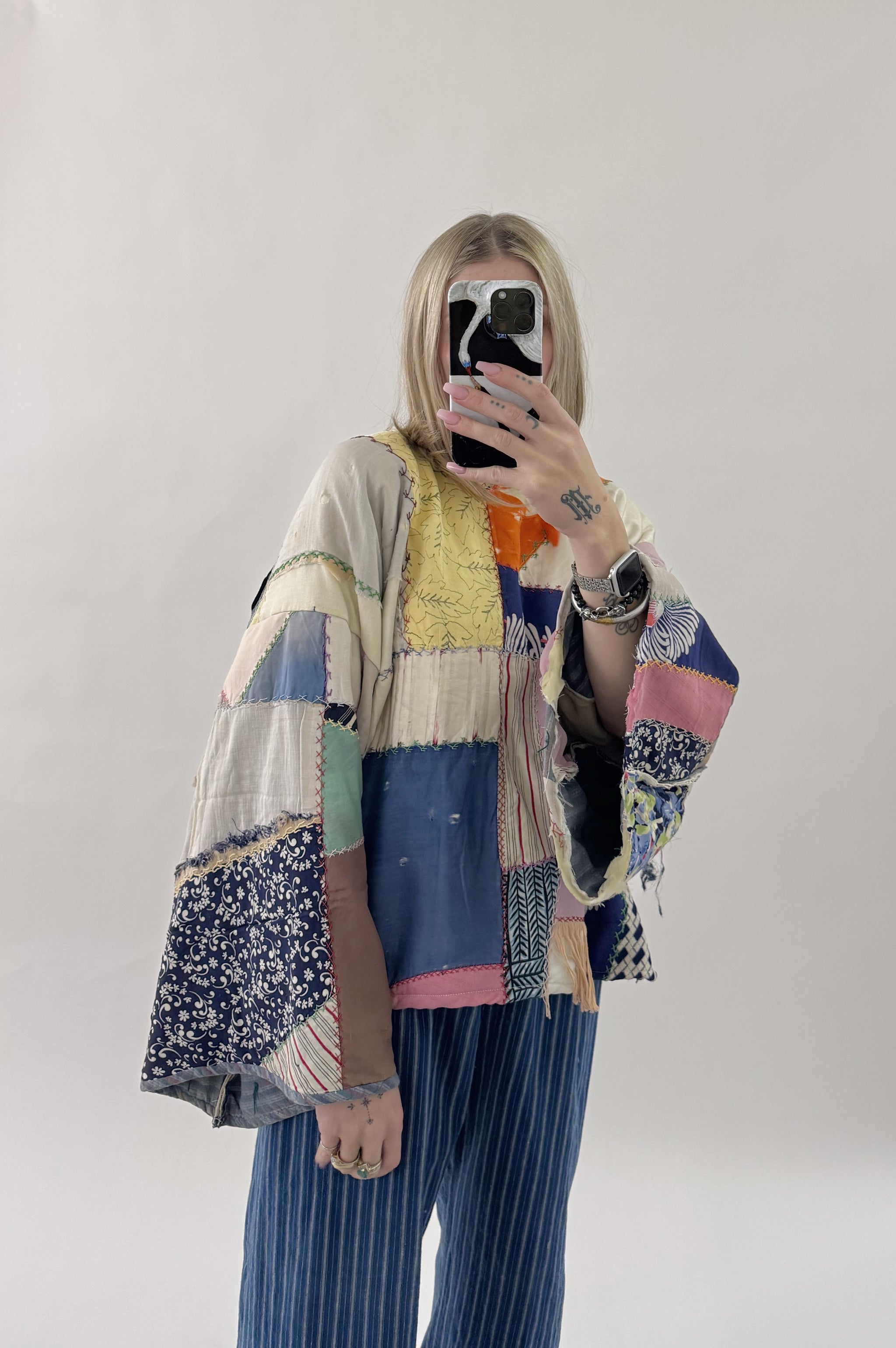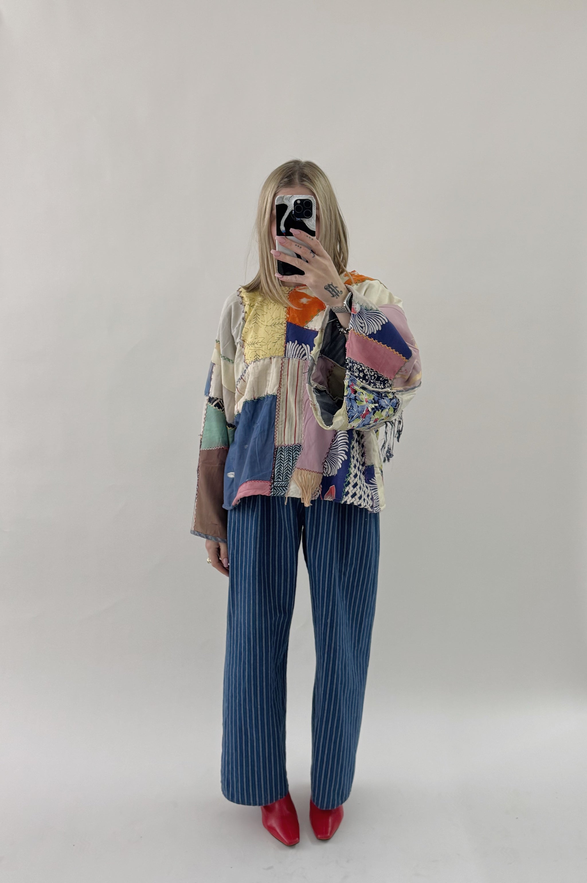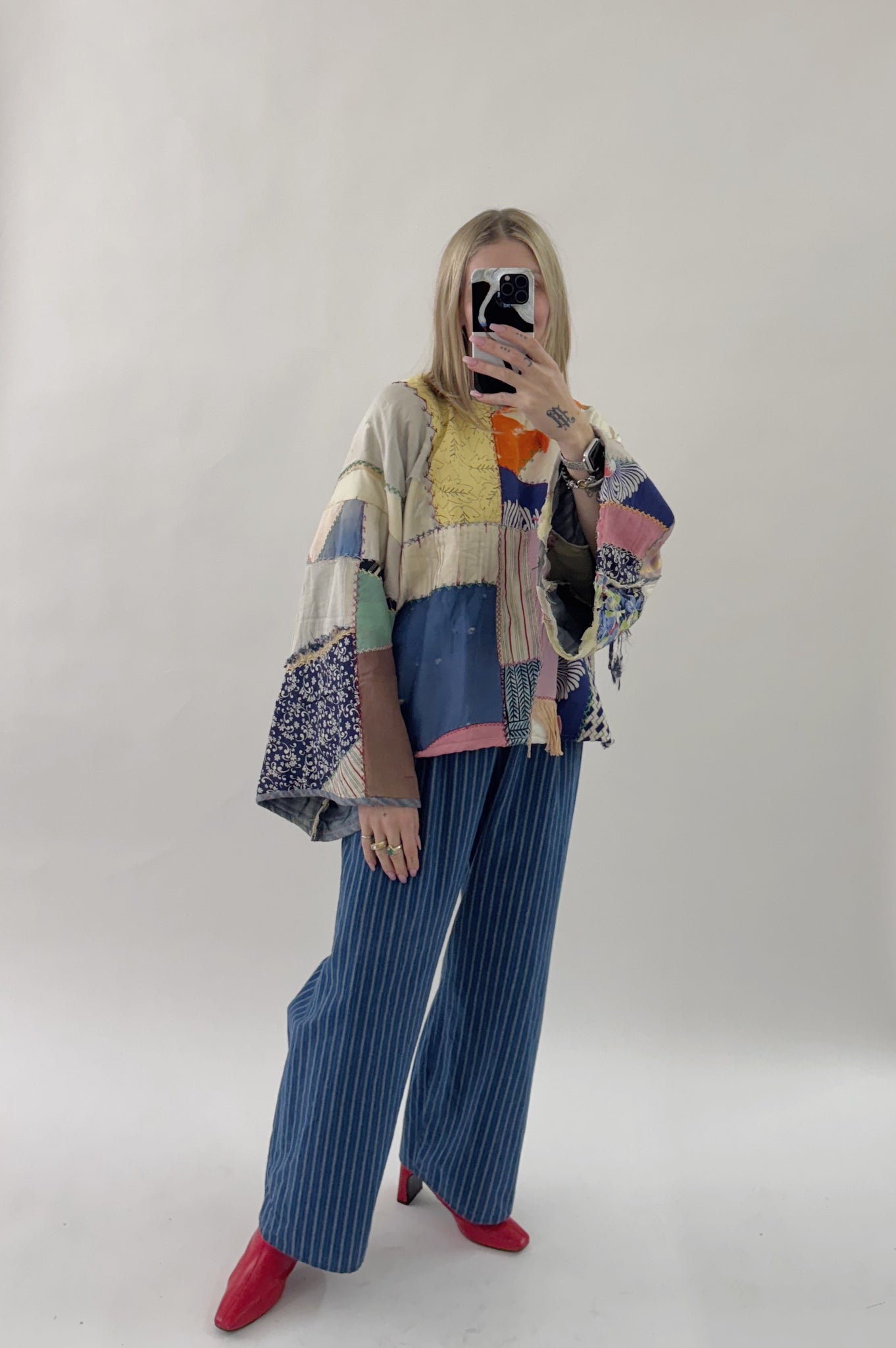 Styles are not pinned, pulled or tucked, they are worn and photographed as-is so that fit is accurately portrayed. Everything is made from vintage, deadstock, or antique materials. Your item may vary slightly from the fabric pictured here or have small flaws. Reducing waste is a top priority, so your item may be patched together slightly, in a non-noticeable way. In another effort to reduce waste, if edges are self finished or will not fray and show, they will be left as-is. The fabric is very delicate, please wear carefully.
