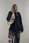 Styles are not pinned, pulled or tucked, they are worn and photographed as-is so that fit is accurately portrayed. Everything is made from vintage, deadstock, or antique materials. Your item may vary slightly from the fabric pictured here or have small flaws. Reducing waste is a top priority, so your item may be patched together slightly, in a non-noticeable way. In another effort to reduce waste, if edges are self finished or will not fray and show, they will be left as-is. The fabric is very delicate, please wear carefully.