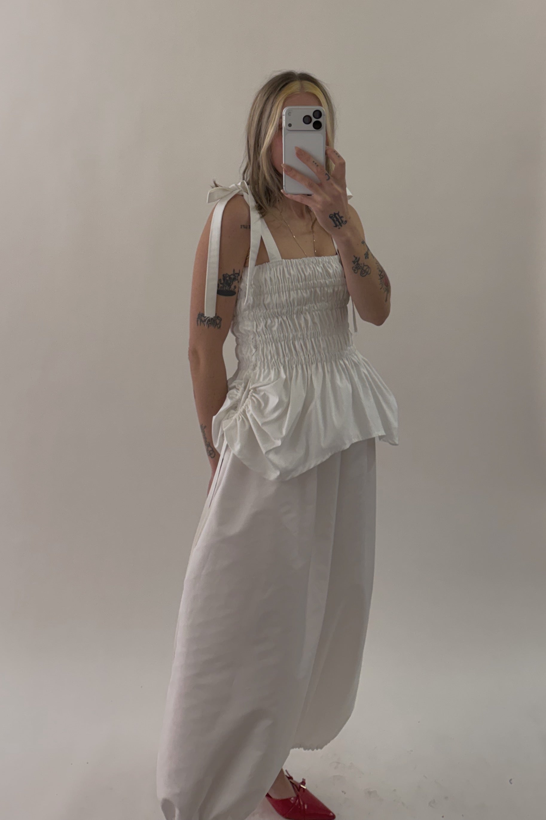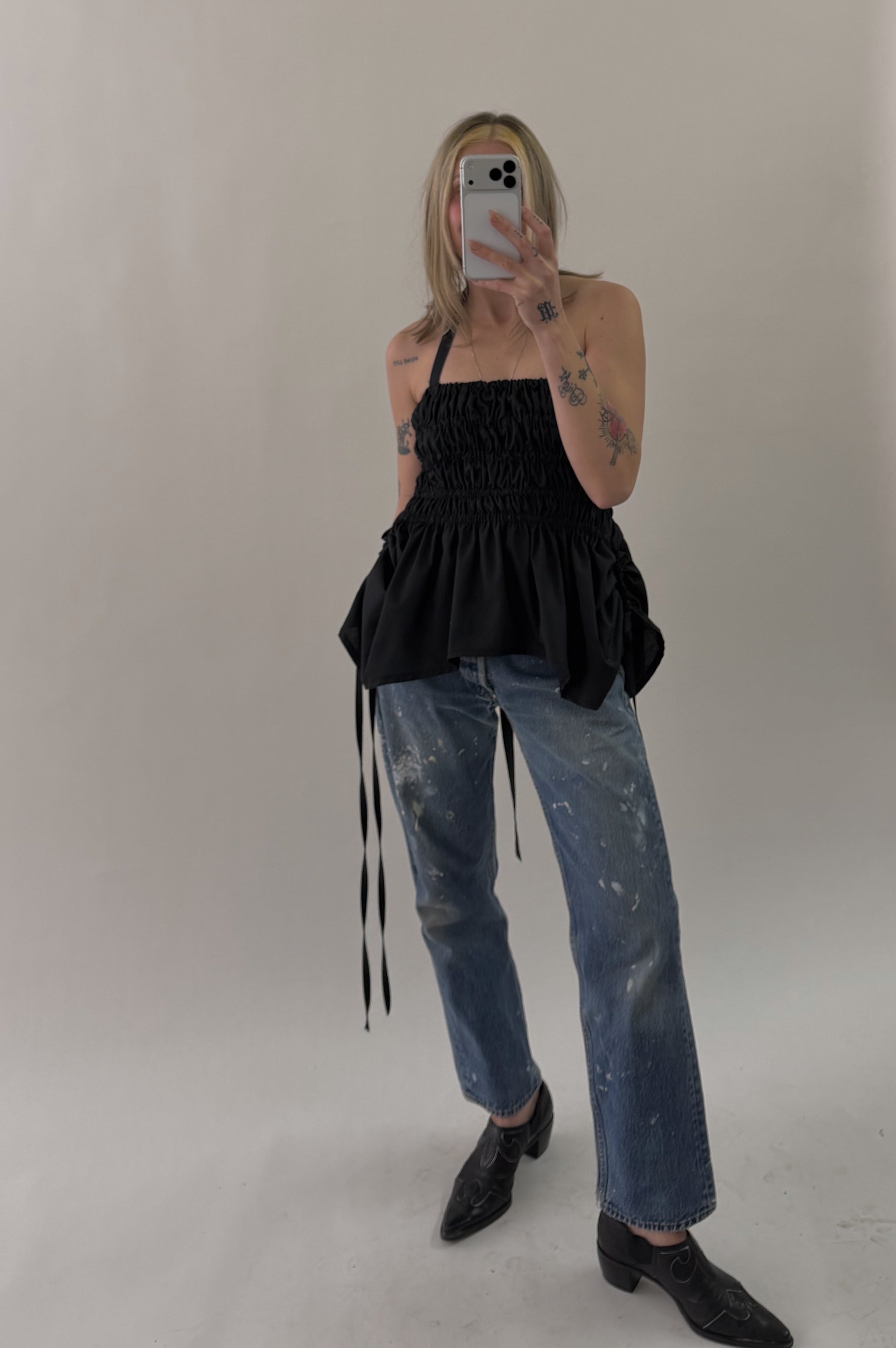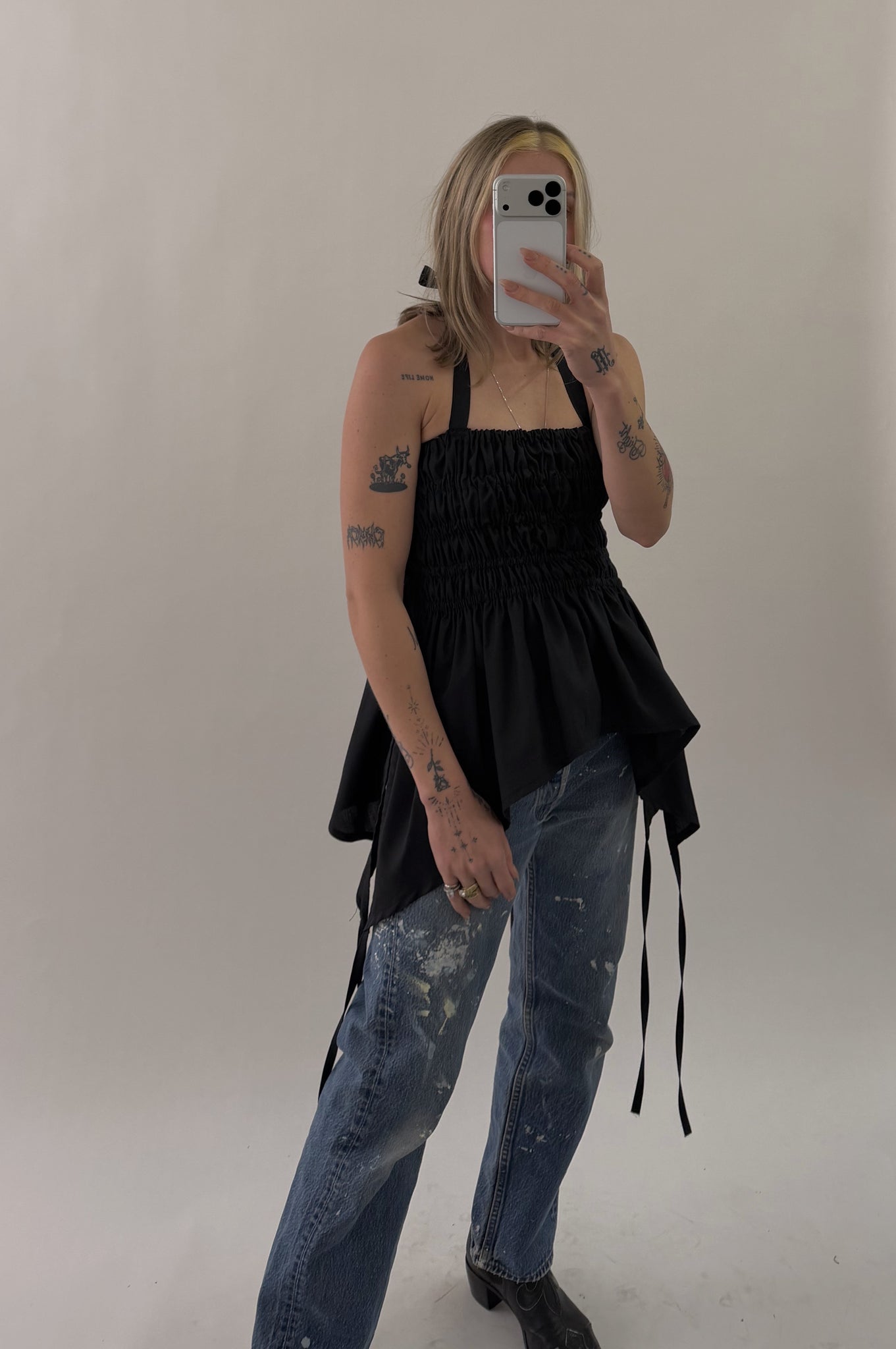 Styles are not pinned, pulled or tucked, they are worn and photographed as-is so that fit is accurately portrayed. Everything is made from vintage, deadstock, or antique materials. Your item may vary slightly from the fabric pictured here or have small flaws. Reducing waste is a top priority, so your item may be patched together slightly, in a non-noticeable way. In another effort to reduce waste, if edges are self finished or will not fray and show, they will be left as-is. The fabric is very delicate, please wear carefully.