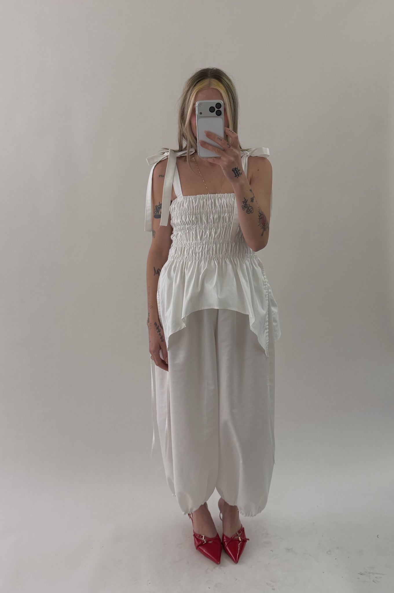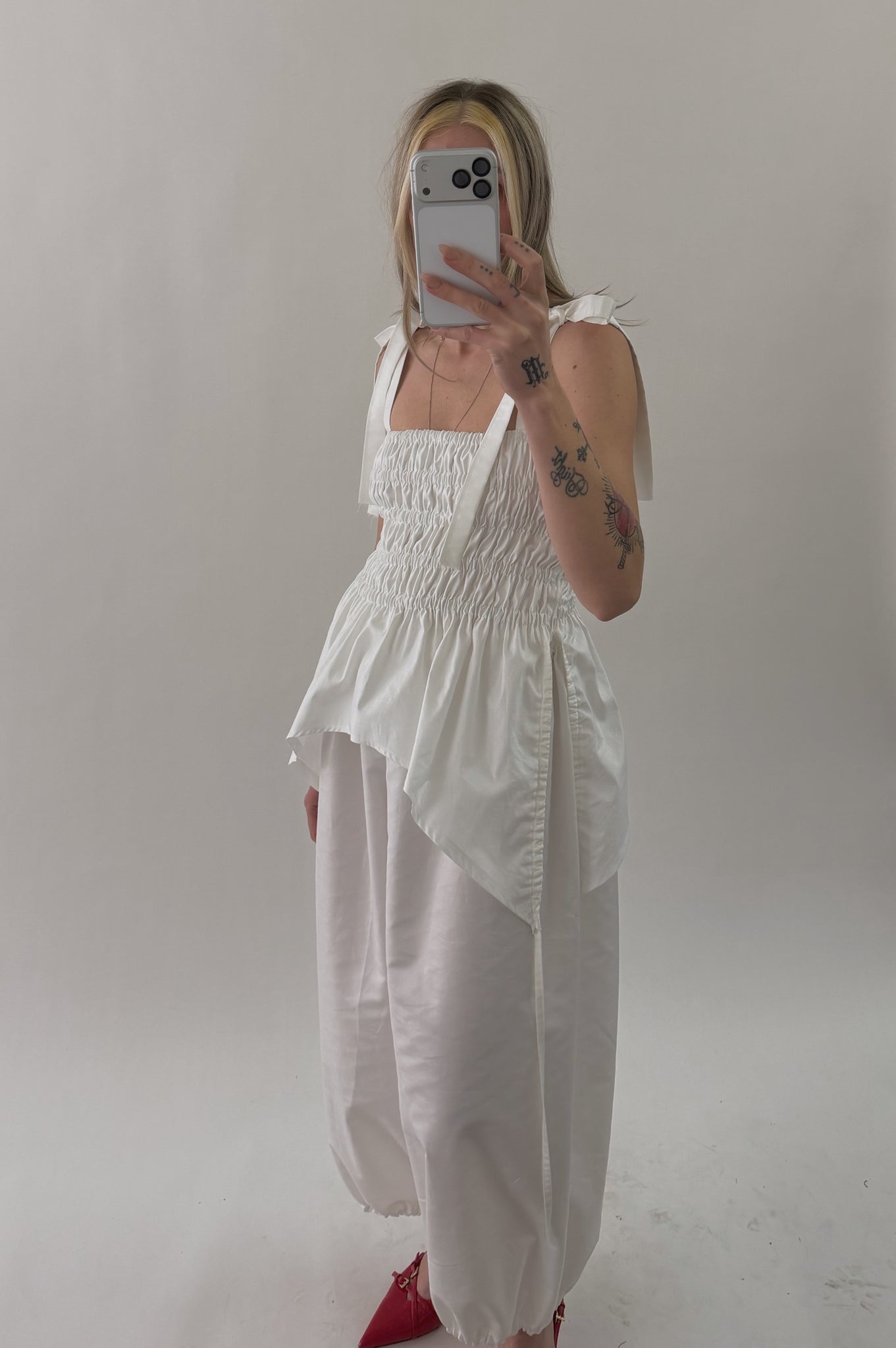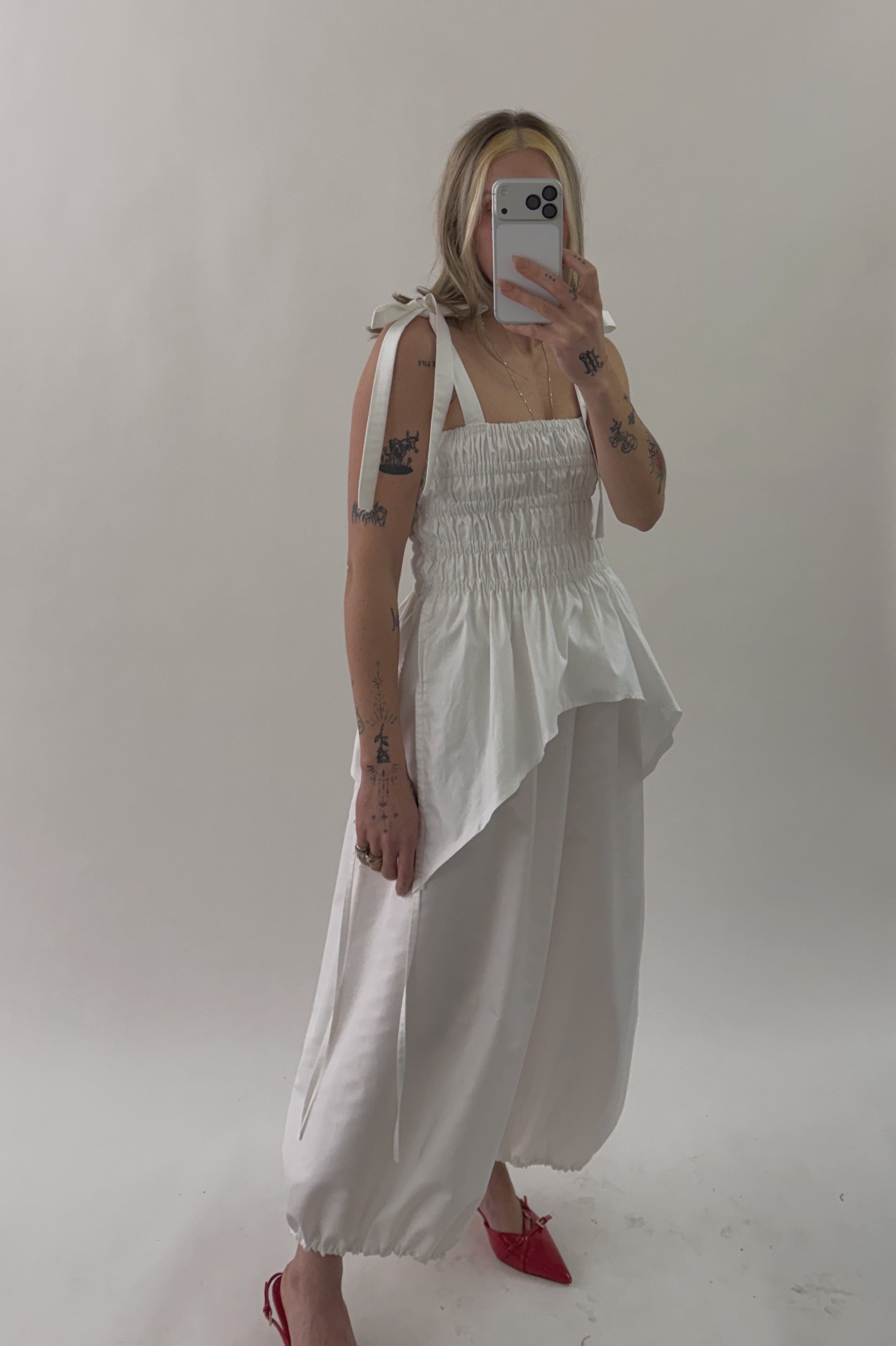 Styles are not pinned, pulled or tucked, they are worn and photographed as-is so that fit is accurately portrayed. Everything is made from vintage, deadstock, or antique materials. Your item may vary slightly from the fabric pictured here or have small flaws. Reducing waste is a top priority, so your item may be patched together slightly, in a non-noticeable way. In another effort to reduce waste, if edges are self finished or will not fray and show, they will be left as-is. The fabric is very delicate, please wear carefully.