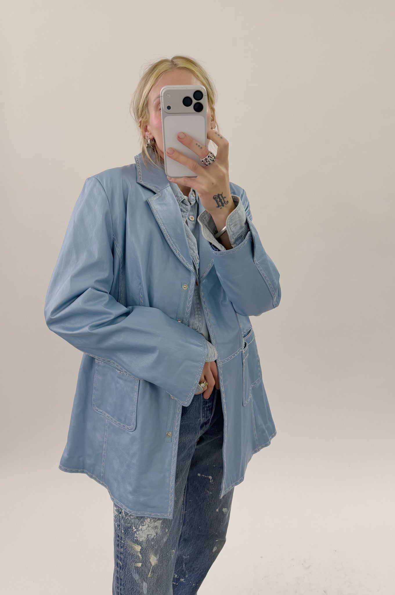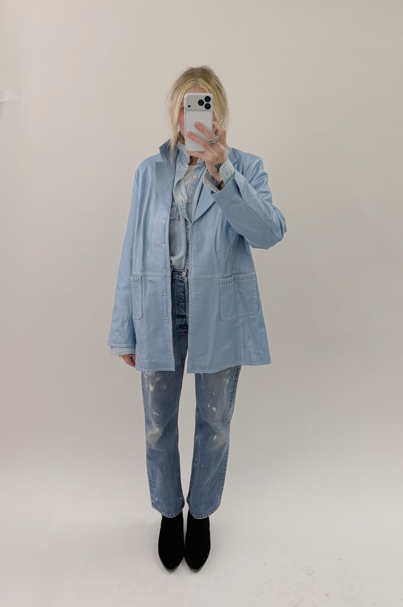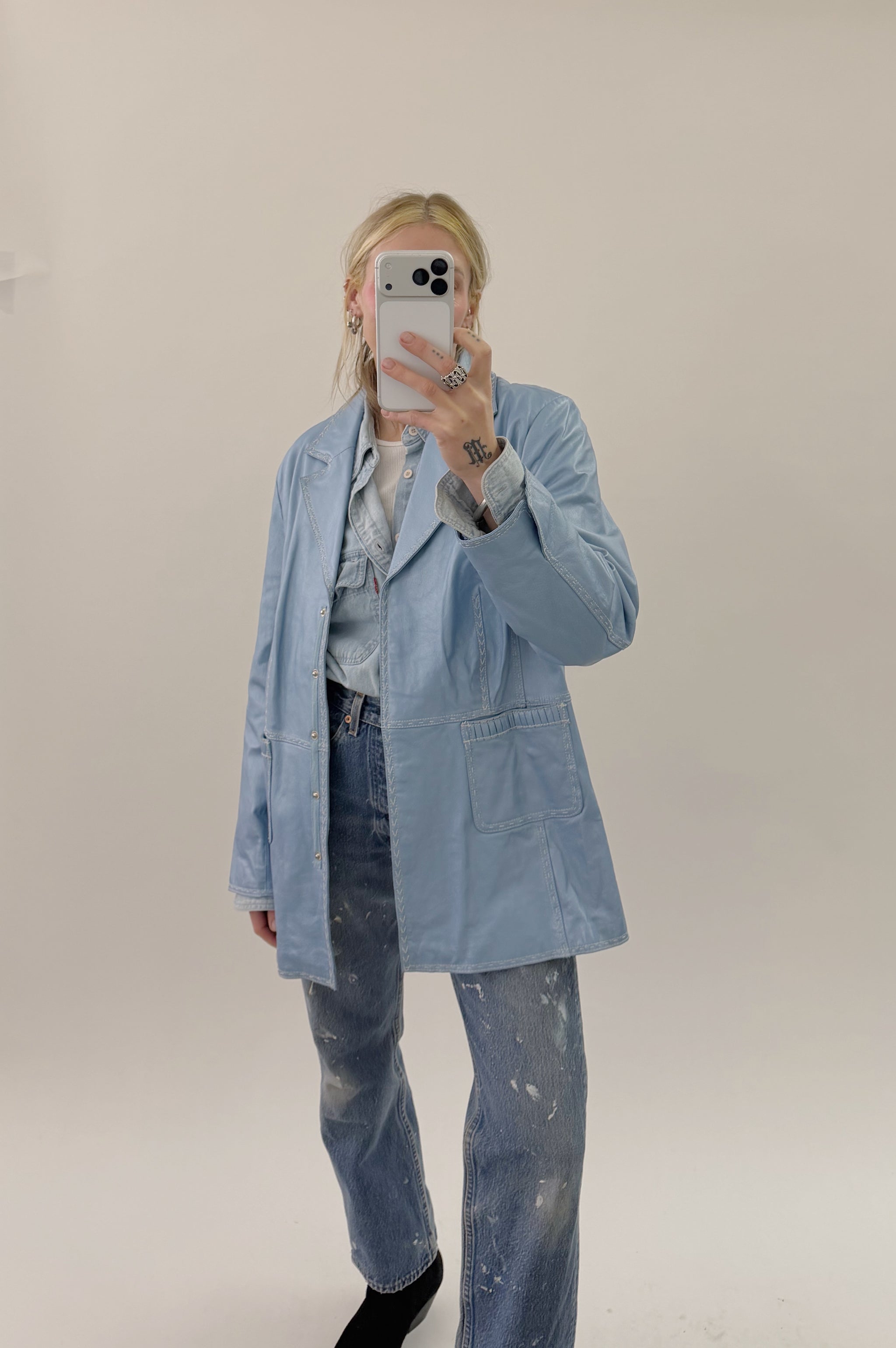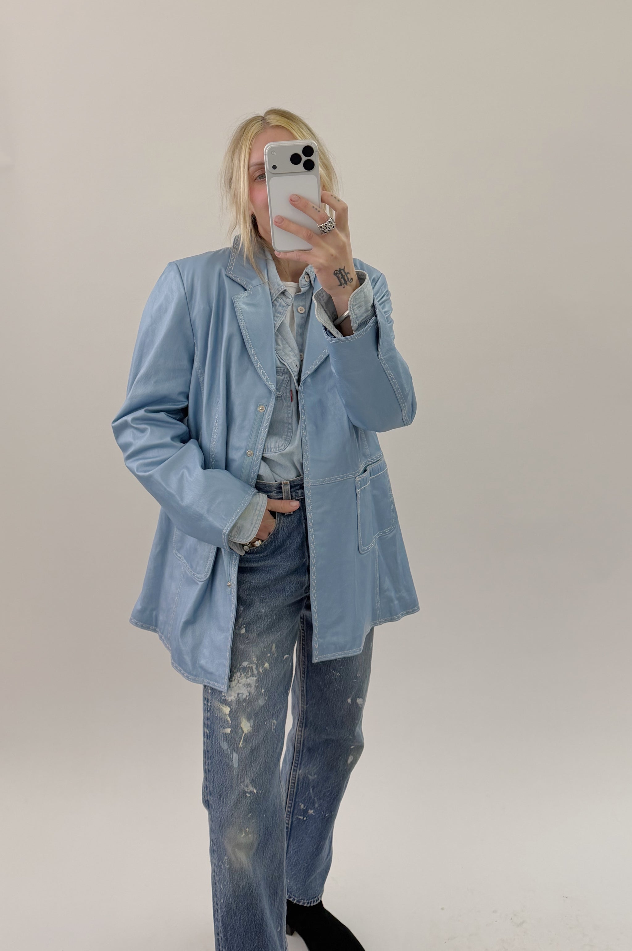 A vintage Bradley metallic blue leather jacket.