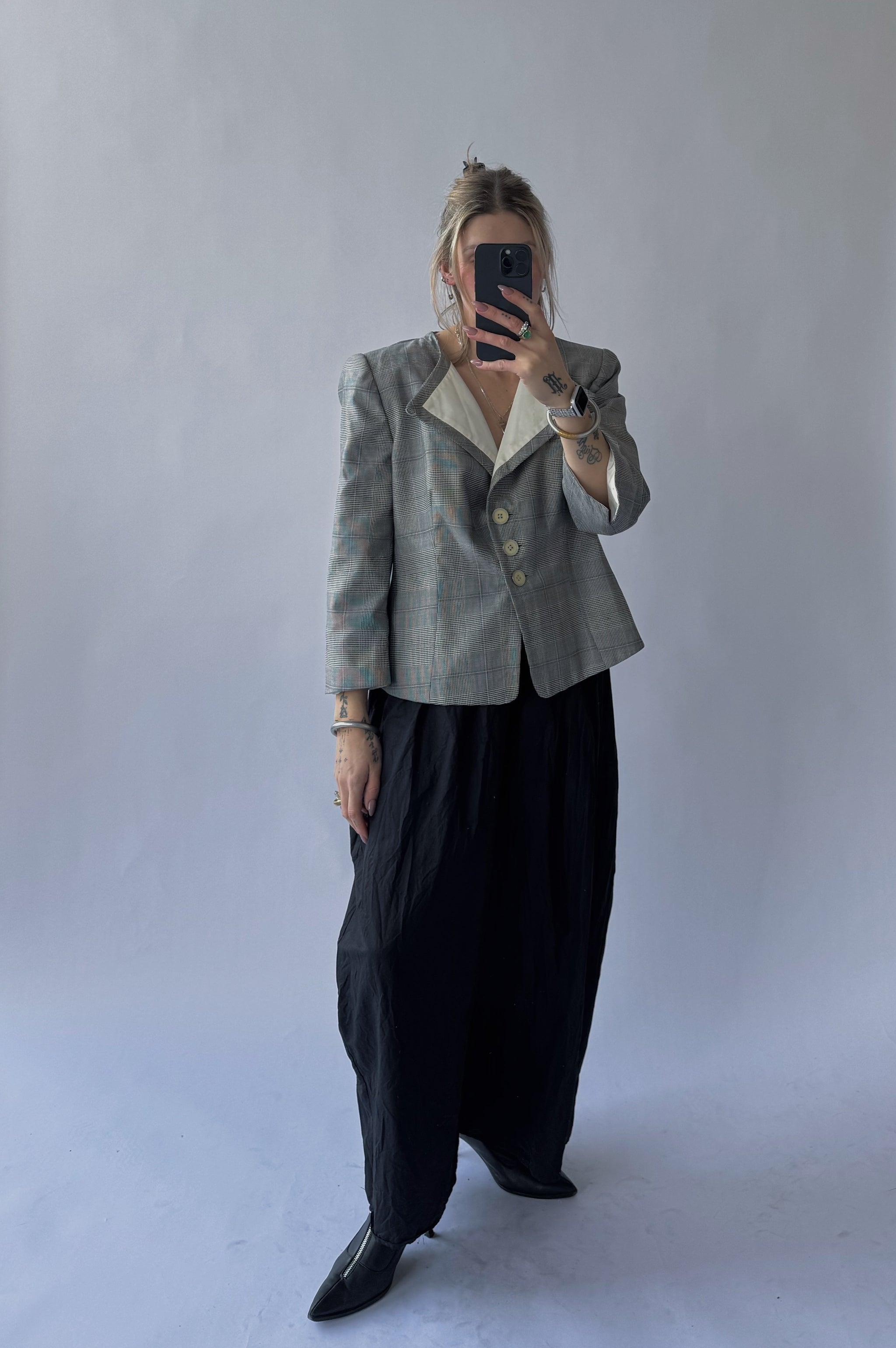 Styles are not pinned, pulled or tucked, they are worn and photographed as-is so that fit is accurately portrayed. Everything is made from vintage, deadstock, or antique materials. Your item may vary slightly from the fabric pictured here or have small flaws. Reducing waste is a top priority, so your item may be patched together slightly, in a non-noticeable way. In another effort to reduce waste, if edges are self finished or will not fray and show, they will be left as-is. The fabric is very delicate, please wear carefully.