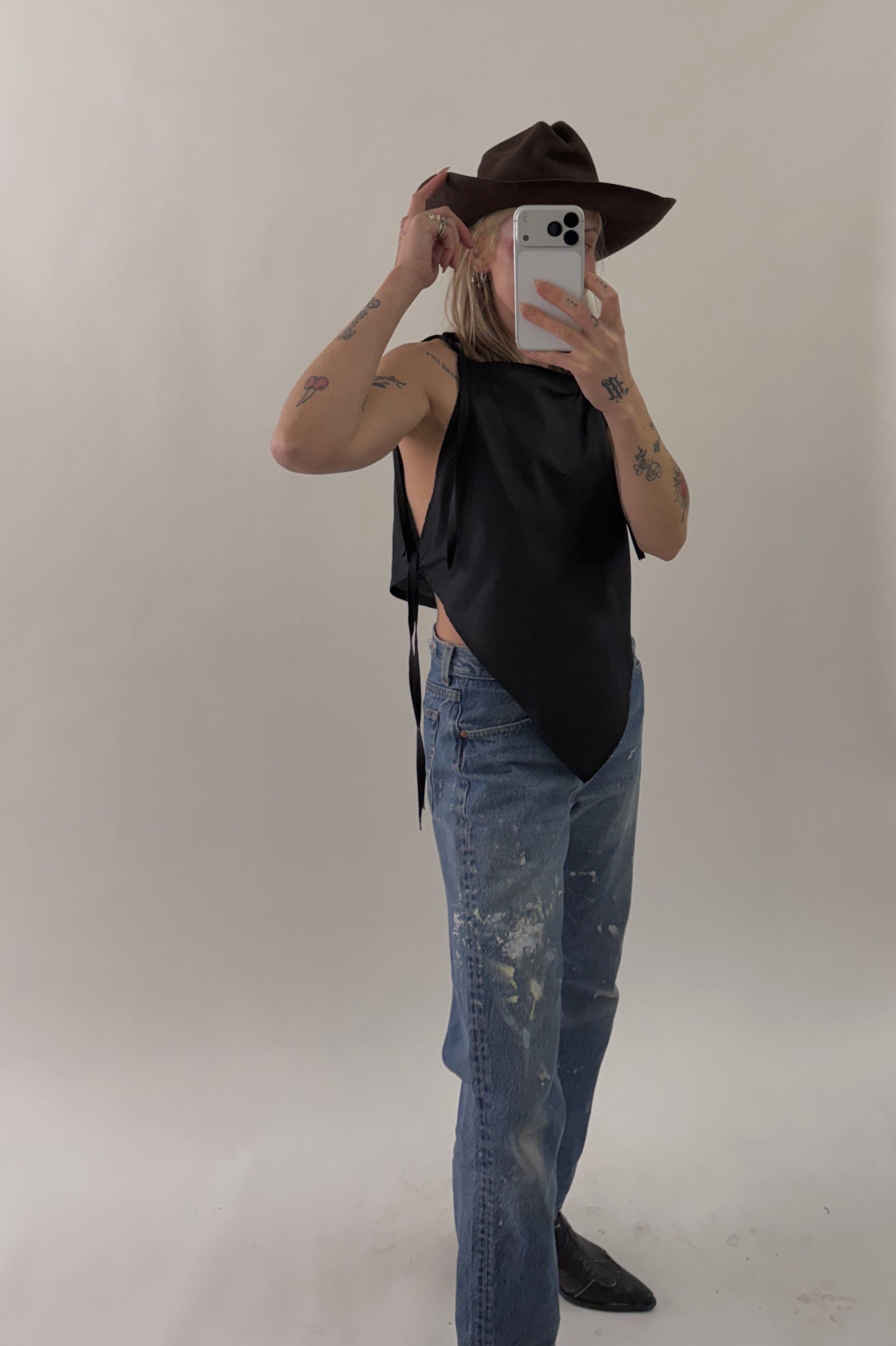 Styles are not pinned, pulled or tucked, they are worn and photographed as-is so that fit is accurately portrayed. Everything is made from vintage, deadstock, or antique materials. Your item may vary slightly from the fabric pictured here or have small flaws. Reducing waste is a top priority, so your item may be patched together slightly, in a non-noticeable way. In another effort to reduce waste, if edges are self finished or will not fray and show, they will be left as-is. The fabric is very delicate, please wear carefully.