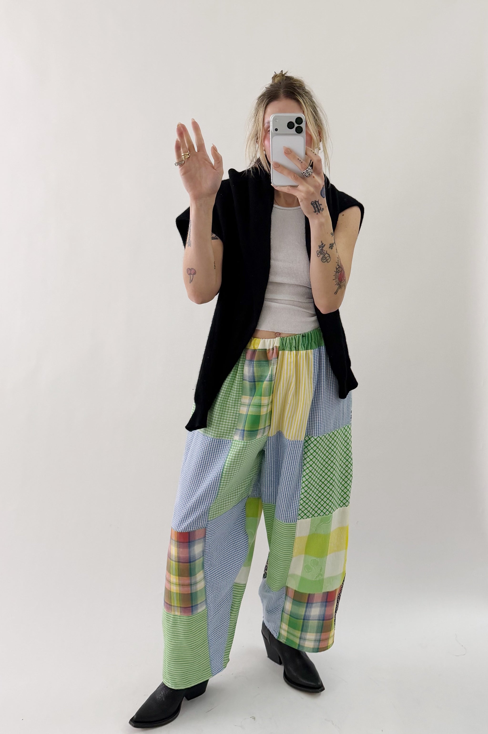 Styles are not pinned, pulled or tucked, they are worn and photographed as-is so that fit is accurately portrayed. Everything is made from vintage, deadstock, or antique materials. Your item may vary slightly from the fabric pictured here or have small flaws. Reducing waste is a top priority, so your item may be patched together slightly, in a non-noticeable way. In another effort to reduce waste, if edges are self finished or will not fray and show, they will be left as-is. The fabric is very delicate, please wear carefully.