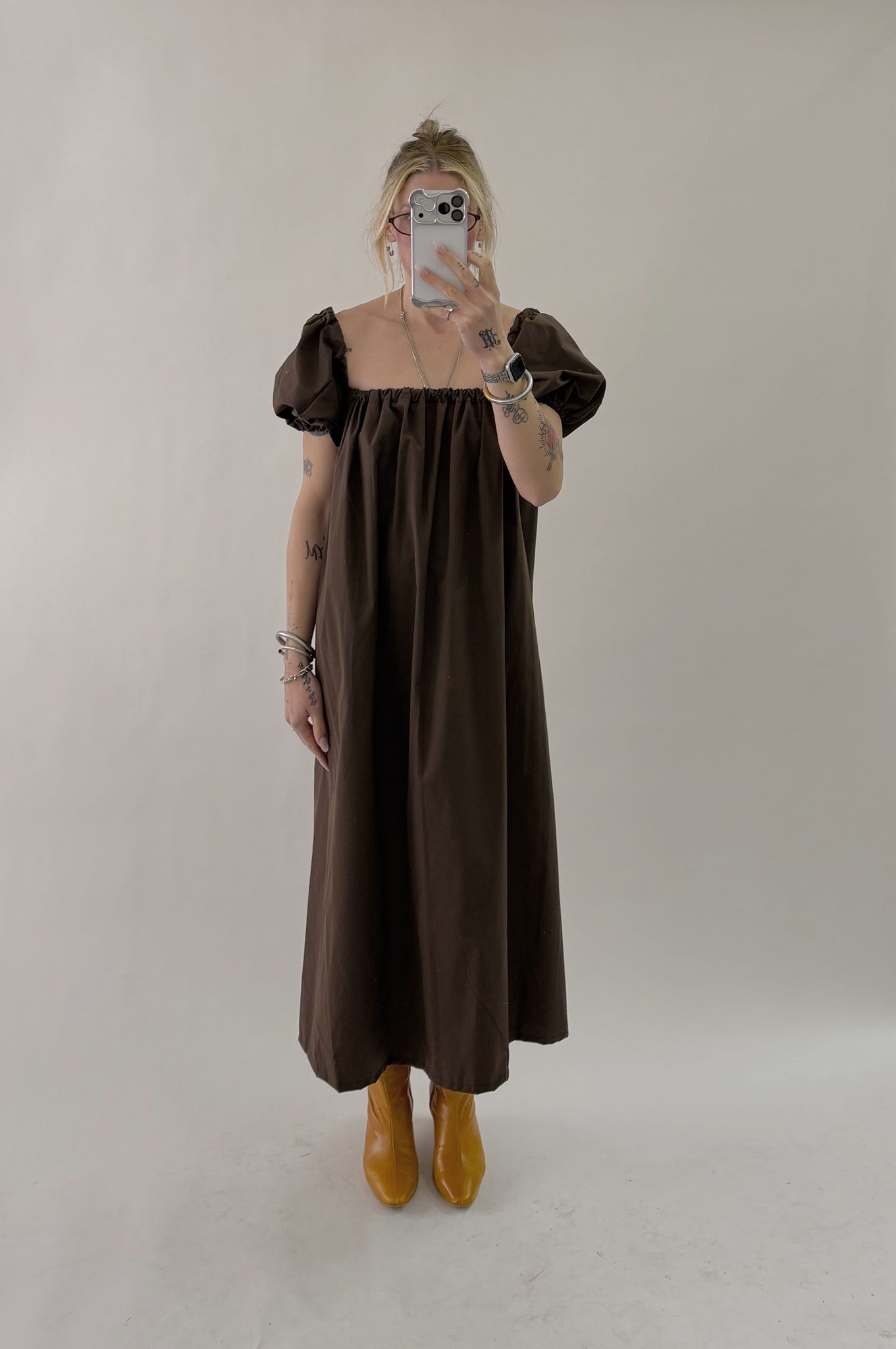 Sample #119, Brown Puff Sleeve Dress