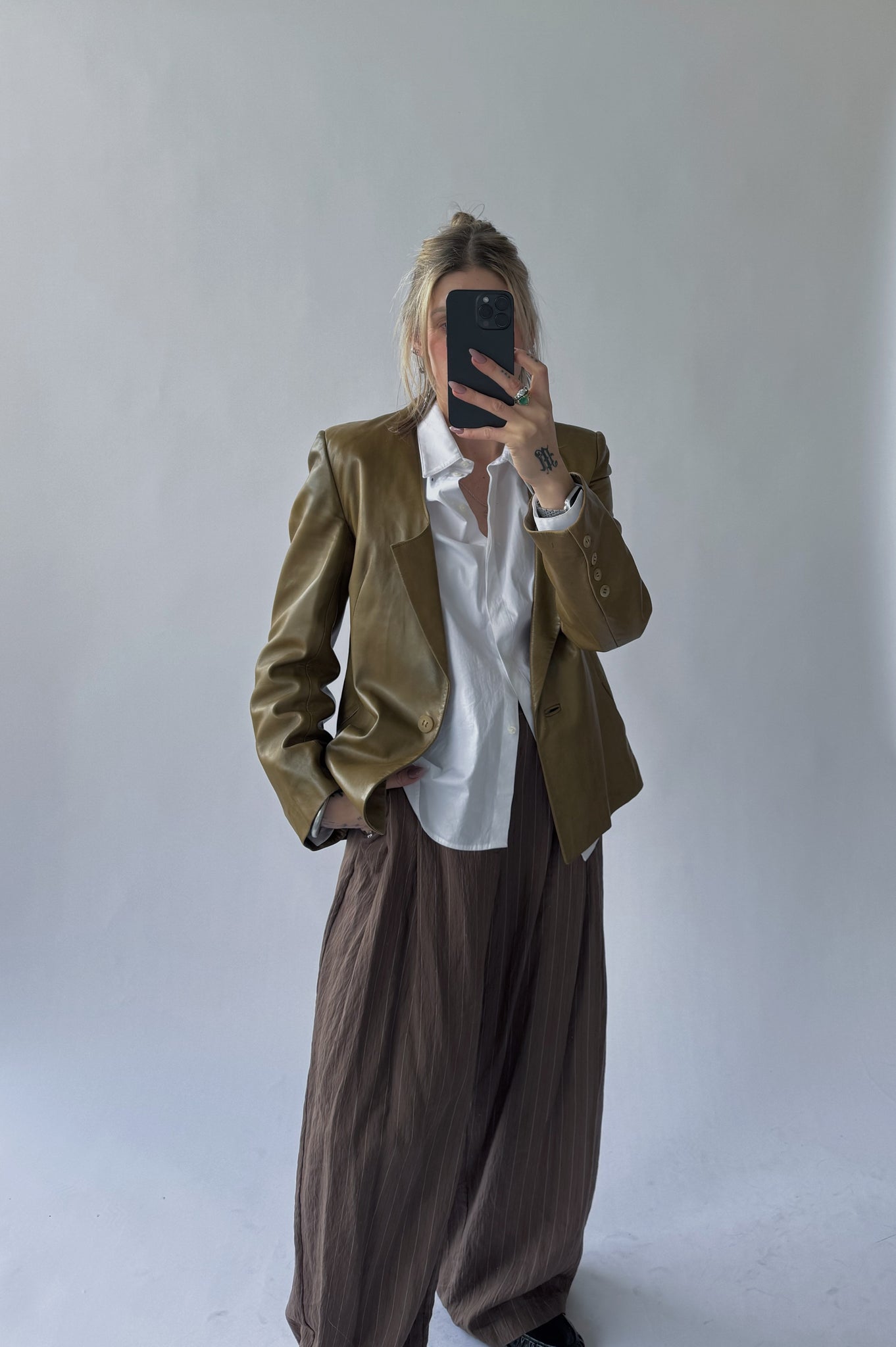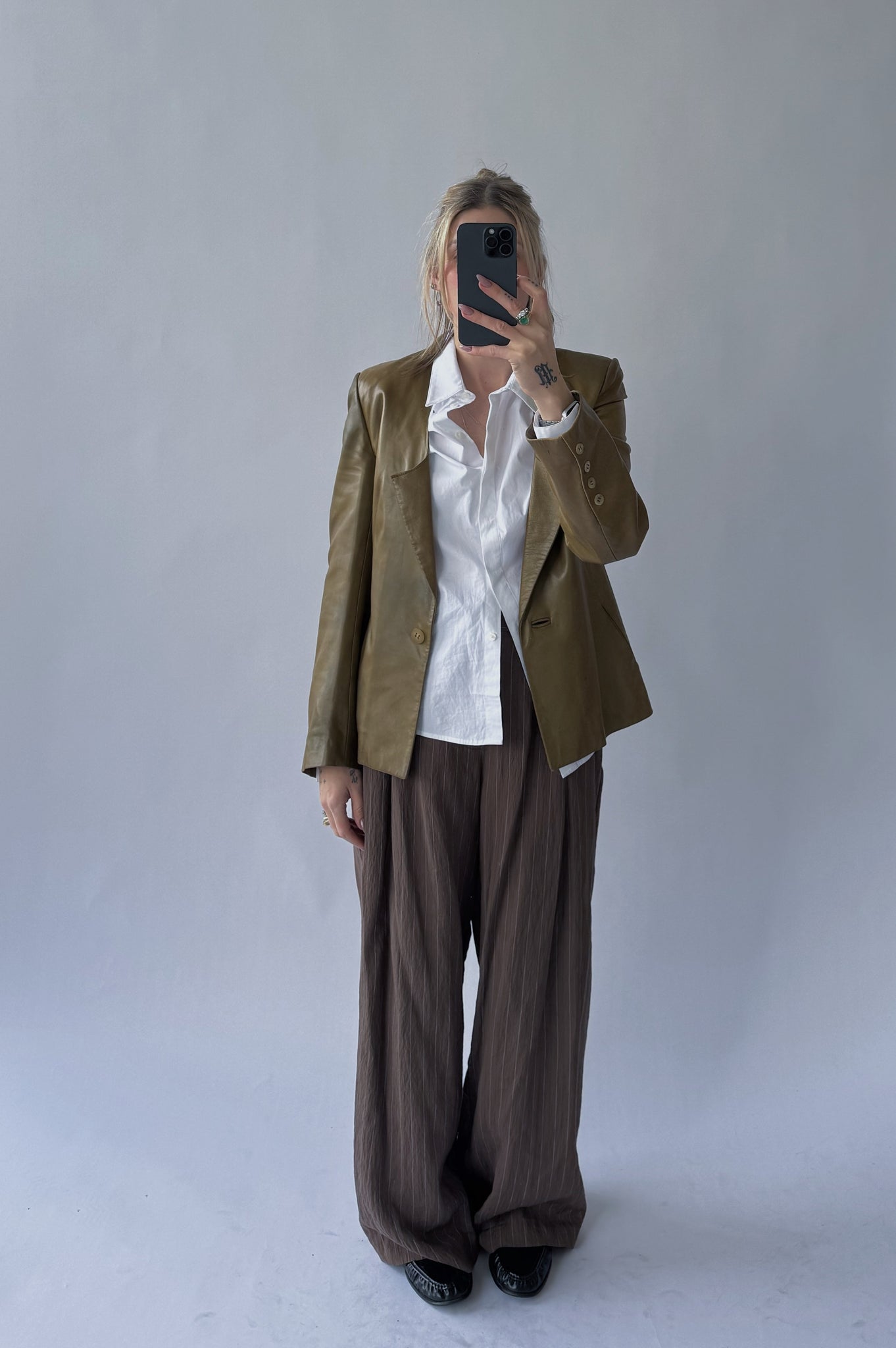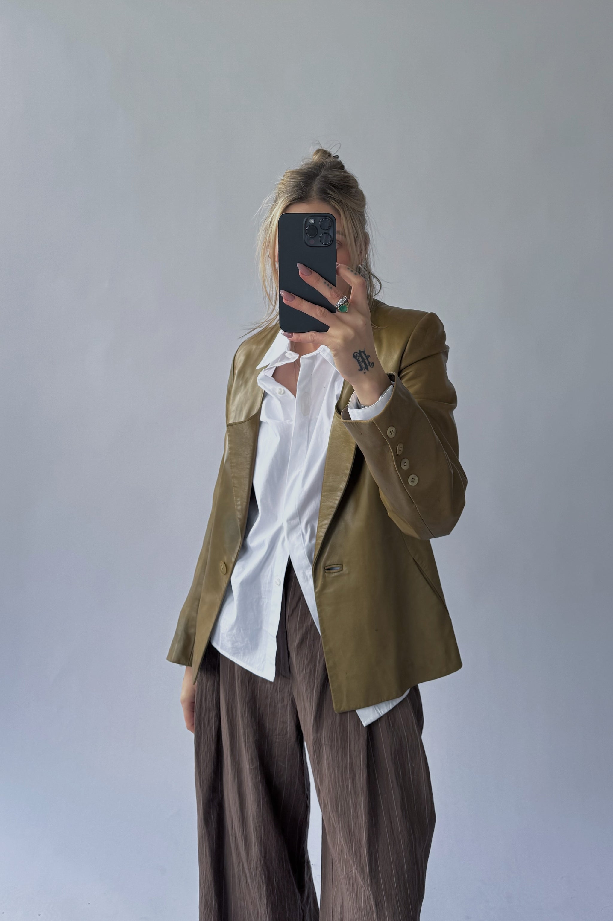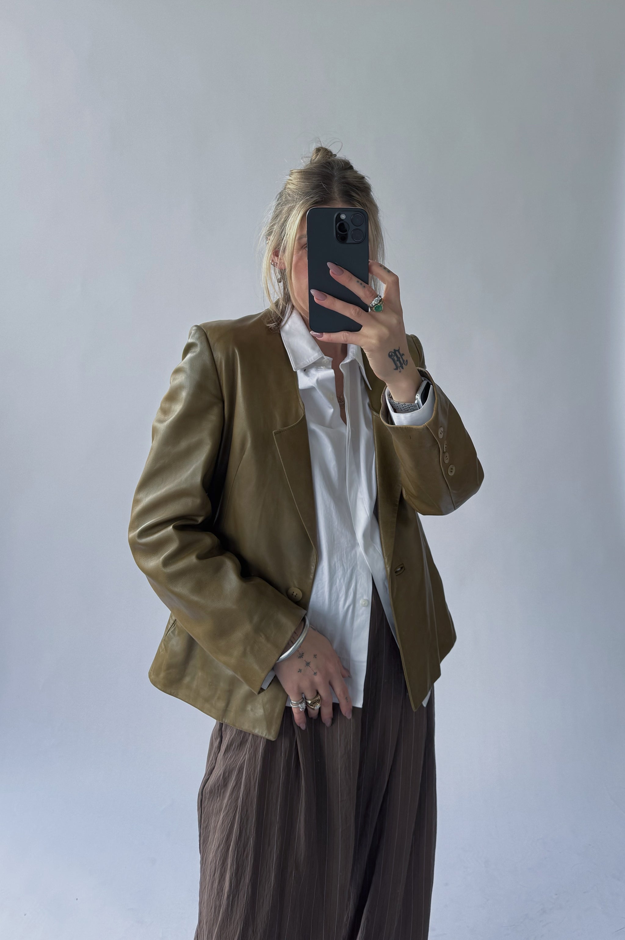 A vintage leather Givenchy blazer. This style has been altered so it is collarless.