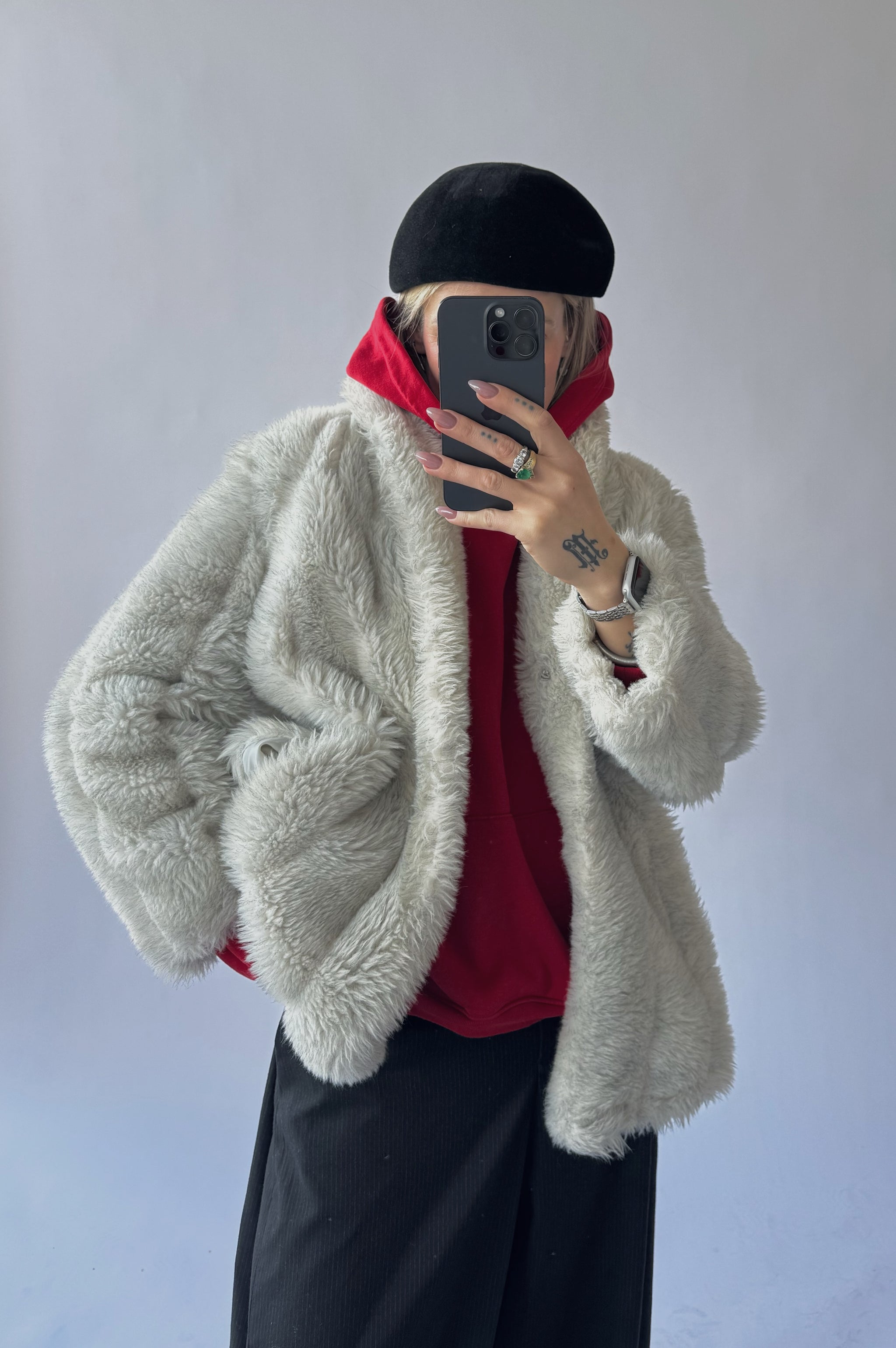 A vintage faux fur coat.